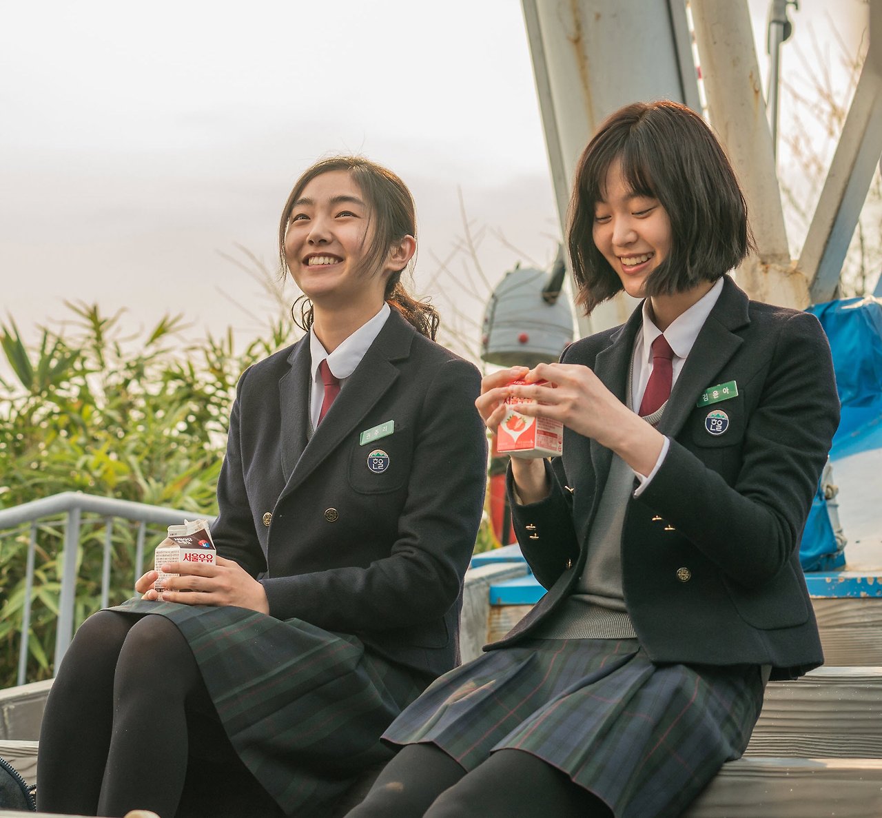 주리는 영업을 그만둔 지 꽤 되어 보이는 놀이동산으로 윤아를 데리고 갔다. 어리둥절해하는 윤아를 끌고 대관람차를 배경으로 셀카를 잡았다. 주리와 윤아를 비추는 셀카 배경에는 대관람차가 보였고 그곳은 바로 주리가 윤아에게 보여 주었던, 대원과 미희가 함께 찍었던 사진의 그 장소였다. 둘은 더 이상 작동하지 않는 놀이동산의 여러 놀이기구들을 타고선 서로 깔깔거리며 여고생다운, 천진난만하고 활기 넘치는 웃음들을 여기저기 흩뿌렸다. 바이킹 위에 나란히 앉은 둘, 주리는 용각산 뚜껑을 열었다. 한 줌도 안 되는 동생의 유골 가루... 그냥 납골당에 둘 걸 그랬어, 이런 윤아의 말에 주리는 답한다, 그 속에 있었으면 더 외로울 거야, 찾아오는 사람도 없고... 그리고 결정적인 한 마디; 난 나를 못 믿어. 이 말에 윤아도 단호하게 동의한다. 이제 결심한 듯 주리는 초코 우유와 딸기 우유를 가방에서 꺼냈고 동생의 가루 일부를 우유에 넣은 후 나머지는 윤아에게 건넨다. 윤아도 주리를 따라 자신의 우유에 나머지 가루를 넣었다. 그리고 둘은 나란히 우유를 마시기 시작했다. 갑자기 주리의 배에서 꼬르륵 소리가 났다. 뭐야? 내가 그런 거 아냐... 서로를 바라보며 까르르 웃는 둘, 그렇게 아이들의 피어나는 웃음을 마지막으로 엔딩 크레디트가 올라간다.