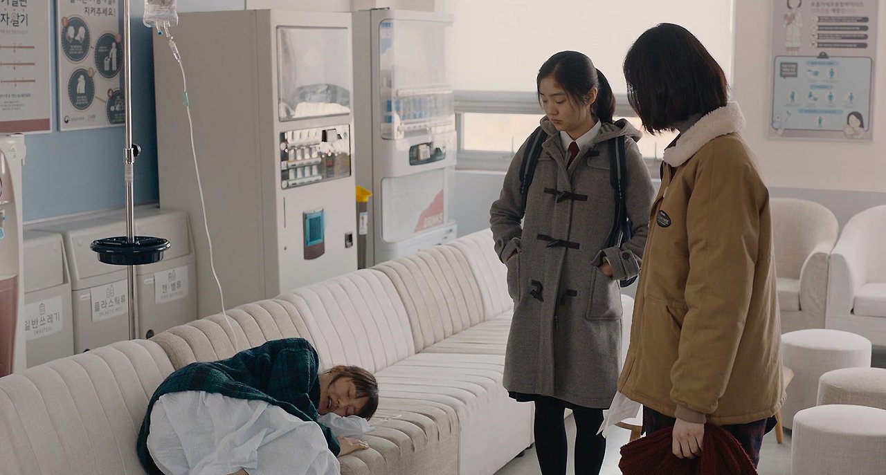 미희의 진료비를 영주가 대신 결재를 했다. 자신이 밀치는 바람에 조산을 하게 되었다는 미안함에 대신 결재를 한 것이지만 엄마 성격을 그대로 닮은 윤아는 빛 지고는 못 사는 성격이기에 그 돈을 마련하고자 학교도 빠진 채 여전히 강원도의 도박장을 전전하는 친아빠를 찾아간다. 친아빠 역시 무책임하기 그지없다. 오랜만에 본 딸이지만 도와주기는커녕 도박 자금을 마련하기 위해 미성년자인 딸아이 명의로 신용카드나 만들어달라고 할 뿐이다. 도박장 차가 왔을 때 급히 떠나는 아빠에게 윤아가 외친다, 아빠, 내 이름은 알아? 내 이름 뭔데? 우리 이제 보지 말자! 그렇게 허탕만 치고 되돌아온 윤아는 알바를 뛰던 편의점 사장에게 돈을 가불하여 겨우 진료비를 맞추었다. 영주를 찾아가 돈을 돌려주고 주민 센터에 들려 출생 신고서를 한 장 챙겨서 병원에 온다. 그 사이 주리는 여전히 전화를 받지 않는 아빠의 행방을 찾아 다시 병원을 찾았고 미희를 보게 된다. 병원 휴게실에서 주리와 나란히 앉은 미희, 주리가 먹던 과자를 받아서 우걱우걱 씹어 먹는데... 오지랖이 심하게 넘쳐나는 사람들은 여전히 있게 마련이다. 같은 병실에 입원한 산모의 엄마는 그런 미희를 보고 산모가 자기 몸을 안 챙긴다고 잔소리를 한다. 하지만 험한 세상을 혼자 헤쳐온 미희였기에 그녀는 만만치 않다, 왜 반말이야? 언제 봤다고 반말이야? 커다란 말싸움으로 번졌고 휴게실의 다른 사람들도 막무가내인 미희의 기에 눌려 움찔거린다. 간호사가 나서서 사태가 진정된 후, 윤아가 나타나서 종이 한 장을 내민다. 아이 출생 신고를 위해서는 출생 증명서가 필요했고 윤아는 미성년자라서 신청을 할 수 없었기에 미희가 직접 해야 한다. 하지만 만사 귀찮은 듯 그냥 휴게실 소파 위에 누워 버리는 미희. 출생 신고에는 관심이, 아니 아이 자체에 관심이 없는 그런 엄마를 보고 윤아가 한 소리를 했지만 오히려 적반하장 격으로 미희가 더 화를 낸다. 어이가 없어진 윤아가 떠나버린 후 사이다처럼 속을 뻥 뚫어주는 주리의 한 마디; 왜 아줌마가 화를 내요, 뭘 잘했다고?