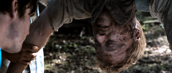 이제 본격적으로 별장 정리를 시작한 그들… 터커는 나무 분쇄기를 이용해서 썩은 나무들을 갈아 없애기 시작했다. 데일은 화장실을 만들기 위해 땅을 파기 시작했고 마침 앨리가 나와서 도와주겠다고 했다. 시골에서 자랐다는 앨리는 곡괭이 질을 곧잘 한다. 그렇게 둘이서 이런저런 이야기를 나누며 땅을 파던 도중 갑자기 한 학생이 나무로 만든 창을 들고 그들에게 달려들었다. 그 학생을 피하기 위해 데일이 몸을 돌리는 순간 어깨에 메고 있던 삽이 앨리의 머리를 때렸고 앨리는 또 기절해 버린다. 반면 달려들었던 그 학생은 땅바닥의 나뭇가지에 걸려 데일을 밑에 깔고 그대로 쓰러졌다. 밑에 깔린 데일 바로 옆에 꽂혀버린 창 위로 넘어진 그 녀석의 몸을 중력이 조금씩 조금씩 아래쪽으로 당겨 창으로 서서히 관통시키고 있었다.