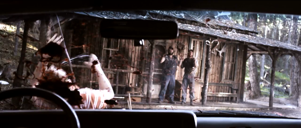 비틀거리며 차로 걸어온 경찰, 힘겹게 무전기를 뽑아 들었지만 그대로 쓰러지고 만다. 척이 용기를 내어 재빨리 차에서 내려 쓰러진 경찰의 허리춤에 장착된 총을 뽑아 들었고 그들을 겨눴다. 나머지 친구들은 경찰차 안에서 공포에 떨며 그 광경을 지켜보고 있었다. 뭐라고 했는지는 모르지만 뚱뚱한 남자가 척에게 어떤 말을 했고 곧이어 척은 갑자기 방아쇠를 당겨 자기 머리를 쏴 버렸다. 또다시 터지는 학생들의 비명 소리… 그것을 숨어서 지켜보던 채드가 재빨리 튀어나와 총을 집어 들고 그 살인마들을 향해 쏘기 시작했다. 그들은 허겁지겁 집으로 숨어 버렸다. 총을 난사하던 채드는 그들의 개를 인질로 삼아서 항복하라고 협박했다. 하지만 만만찮은 그들… 네일건으로 저항을 했고 총알과 못들이 두 진영 사이를 여러 번 빠른 속도로 스쳐 지나갔다. 채드는 최후의 통첩을 위해 개가 있는 쪽으로 총구를 돌렸지만 그 자리에 개 대신 키 큰 살인마가 있었다. 그는 후다닥 도망치기 시작했고 이번에는 학생들이 그를 쫓기 시작했다. 마침내 숲 속에서 숨어있는 그를 붙잡았고 채드는 한 주먹에 그를 기절시켰다.