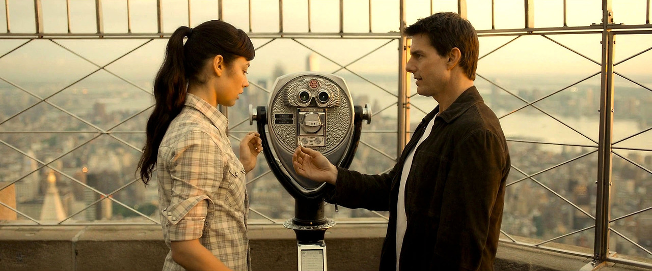 조덕배가 부른 <꿈에>라는 노래 가사처럼, 주인공 잭 하퍼(톰 크루즈 분)는 어떤 여인에 대한 반복되는 꿈을 꾼다. 꿈속에서 그는 엠파이어 스테이트 빌딩 앞에서 한 여자를 기다린다. 저 멀리서 그녀는 미소를 띤 채 그를 응시하며 서 있다. 오가는 인파들로 인해 그녀의 모습이 지워졌다 되살아나기를 반복하던 중 잭은 잠에서 깬다. 이렇게 영화는 흑백 화면으로 그려지는 아련한 잭의 꿈으로 시작한다. 잭은 그녀를 알 것만 같지만 만난 적도 없고 늘 함께 했지만 이름도 모른다. 그런 그녀를 그는 "기억"이라 부르고 싶지만 자신의 기억일 리가 없다. 그렇다, 잭은 그것이 꿈이란 것을 알고 있다. 하지만 그는 그 이상의 무엇이 있을 것만 같다. 5년 전, 안전 요원 보안 서약을 하고 강제 기억 삭제 처방을 받았음에도 이 꿈은 마치 자신의 실제 기억인 듯 생생하다.
