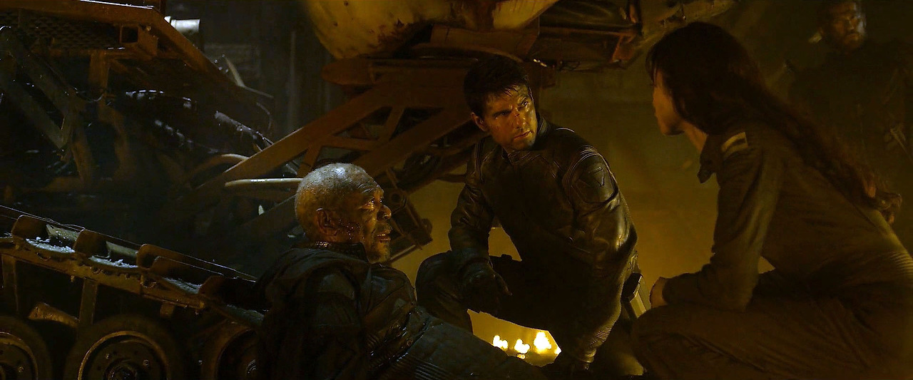 정신을 차렸을 때 잭은 자신이 결박되어 있음을 알았다. 어둠 속에서 목소리가 들려왔다. 자신이 주웠던 책의 문구를 누군가 읊조리고 있었다. 순간 성냥불이 켜지고 입에 시가를 문, 약탈자가 아니라, 인간을 볼 수 있었다. 지도자 격으로 보이는 그(모건 프리먼 분)는 오랫동안 잭을 지켜봐 왔다고 한다. 보안을 위해 기억을 다 삭제했기에 자신은 털어놓을 아무것도 없다는 잭의 말에 약탈자를 가까이서 본 적이 있나? 그 사내의 첫 질문이었다. 방사능 지역엔 접근 마라, 너무 많은 걸 묻지 마라, 업무 주의사항치곤 좀 특이하지 않나? 그러곤 그가 '조명!'이라고 소리치자 조명이 환하게 켜졌다. 잭이 본 것은 폐허가 된 건물 층층이 늘어선 수많은... 약탈자가 아니라, 사람들이었다. 우린 외계인이 아니야, 인간들이야. 어떤 연유에서인지는 모르지만 그들은 다양한 방법으로 드론의 감시를 피해 숨어 살았고 약탈자 노릇을 하고 있었다. 오랜 시간을 들여 이들은 GPS 코드를 뚫었고 그것을 이용해 오디세이호를 추락시켰다. 왜? 오디세이는 NASA가 만든 정밀 원자로라고 한다. 연료 전지 한 개가 그 거대한 수력 설비를 박살 내 버렸다. 그런 게 10개라면 어떨지 상상해 보게... 무기급 플로토늄 핵도 장착했고 그것을 운반할 드론도 탈취했지만 문제는 드론이 자신들을 인식하지 못하기에 작동시킬 수가 없다고 한다. 그래서 잭이 필요한 거다. 드론이 핵을 운반할 수 있도록 재프로그래밍하는 것! 이것이 그들이 잭을 생포한 이유다. 그러면 어디로? 바로 테트다. 그들은 핵폭탄으로 테트를 폭파시켜 이 기나긴 전쟁을 끝장낼 것이라 한다. 테트에도 사람들이 있어, 이런 잭의 반론에 그 남자는 들은 척도 하지 않고 테트 중심부로 진입할 수 있도록 드론을 재프로그래밍하라며 잭의 머리에 총을 겨눈다. 엿이나 먹어... 잭에게 협박이 통하지 않을 거란 걸 알고 있었다는 듯 그들의 총구는 줄리아의 머리를 향한다. 그때 비밀 기지 부근에 드론이 출현했다는 비상 신호가 떴고 다른 이들이 다급하게 전투 준비에 들어간 사이 남자는 잭을 데리고 다른 곳으로 이동한다. 가는 동안 잭은 그들을 설득했다, 드론 하나가 왔다는 것은 또 다른 드론들이 더 온다는 것을 의미하고 그러면 이곳은 쑥대밭이 될 것이다, 자신과 줄리아를 보내주면 공격을 중지시키겠다고 했다. 우두머리는 아무 말도 없이 잭과 줄리아를 데리고 미로 같은 길을 지나서 문을 열었고 잭과 줄리아를 순순히 놓아주었다. 그러면서 이 말을 덧붙였다. 나, 거기 가봤네, 소위 방사능 구역... 진실이 궁금하다면 자네도 한번 가보게. 이 말을 마지막으로 그는 빼앗았던 잭의 총을 돌려준다.