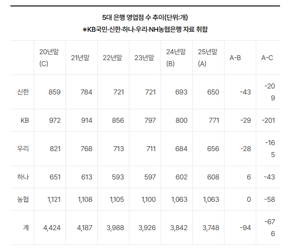 출처 : 연합뉴스 / 최대이익에도 사라지는 은행지점... / 2026.02.17