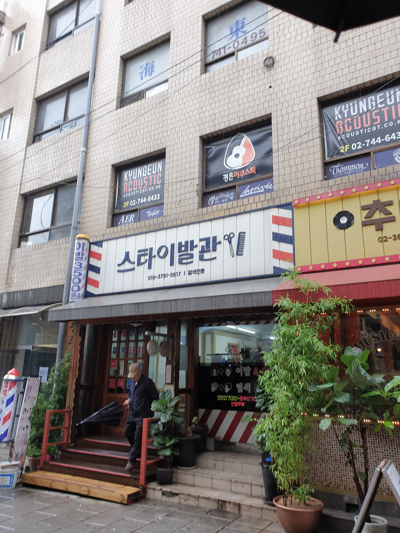 검은 염색약을 칠하고 이발소 주변을 배회하는 신사는 건너편 건물 처마 밑에서 담배를 피우고 있었다. (사진 하)