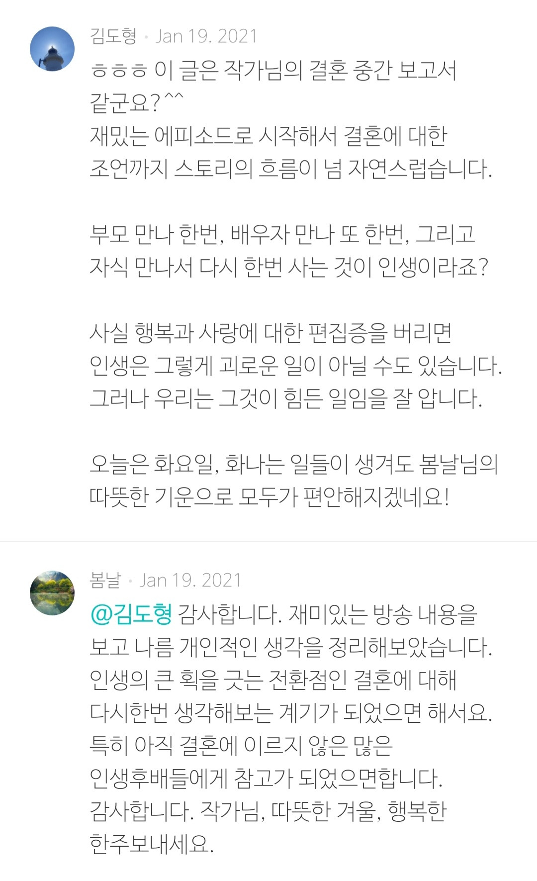 그리고 지속적인 댓글을 통해서 생각지 못했던 교류가 이루어졌다.