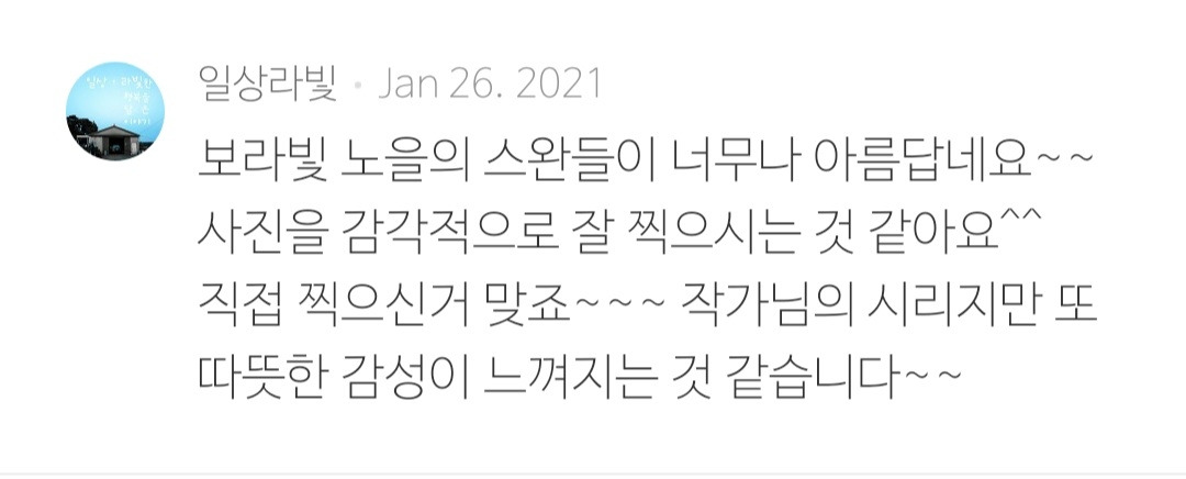 처음 느낌 그대로 님은 필명처럼 순수하고 깨끗하다.