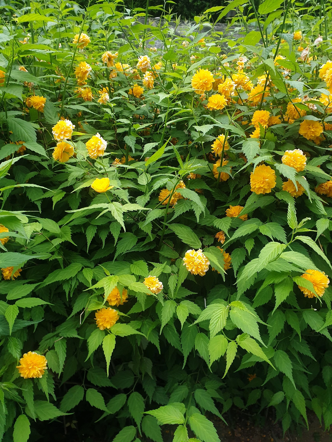 등산로 주변에 황매화가 활짝 피었다. 찾아보니 황매화는 꽃잎이 5장이고 이 친구는 겹황매화 또는 죽단화라고 한다. 꽃말은 숭고, 기다림. 꽃을 살짝 볶아 차로 우려먹기도 한다.