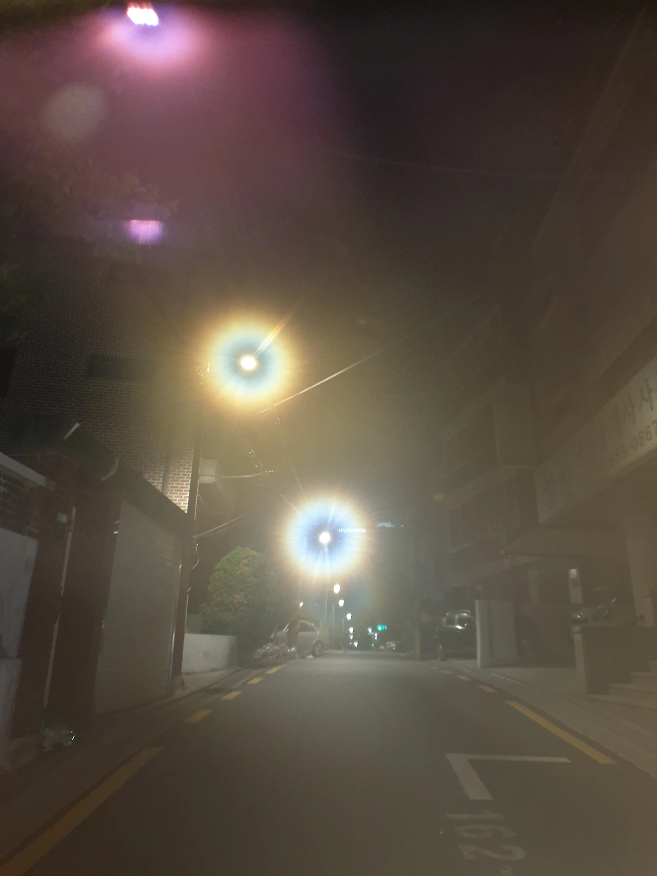 가로등 아래에서 얼굴에 흐르는