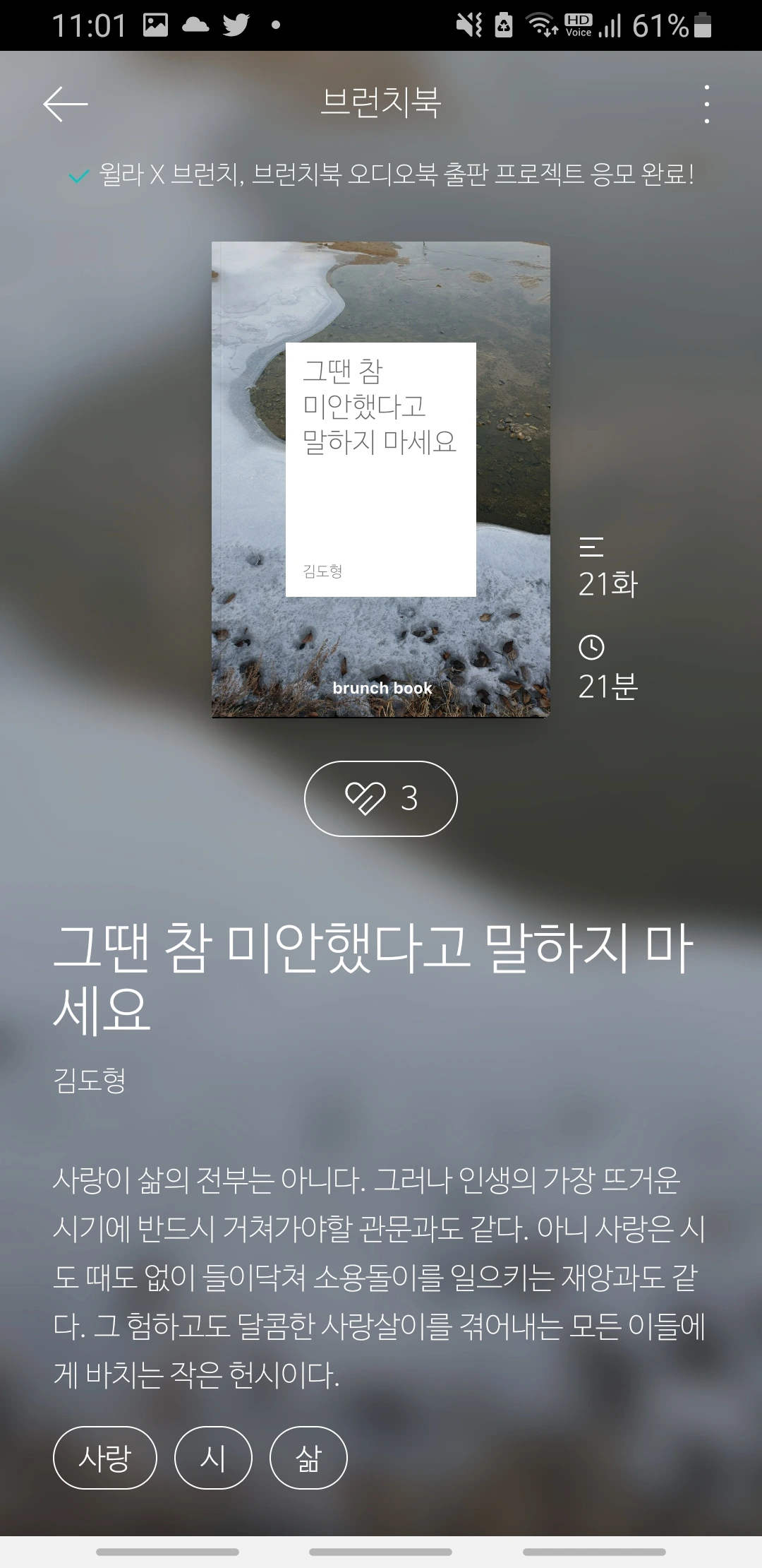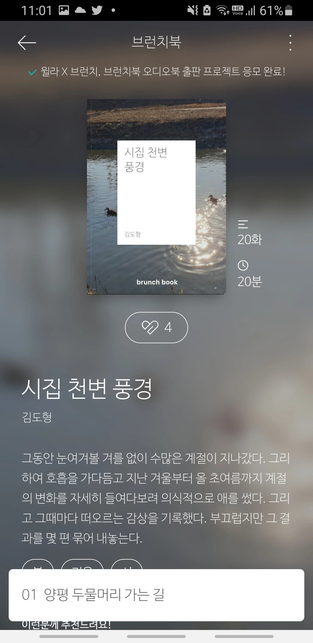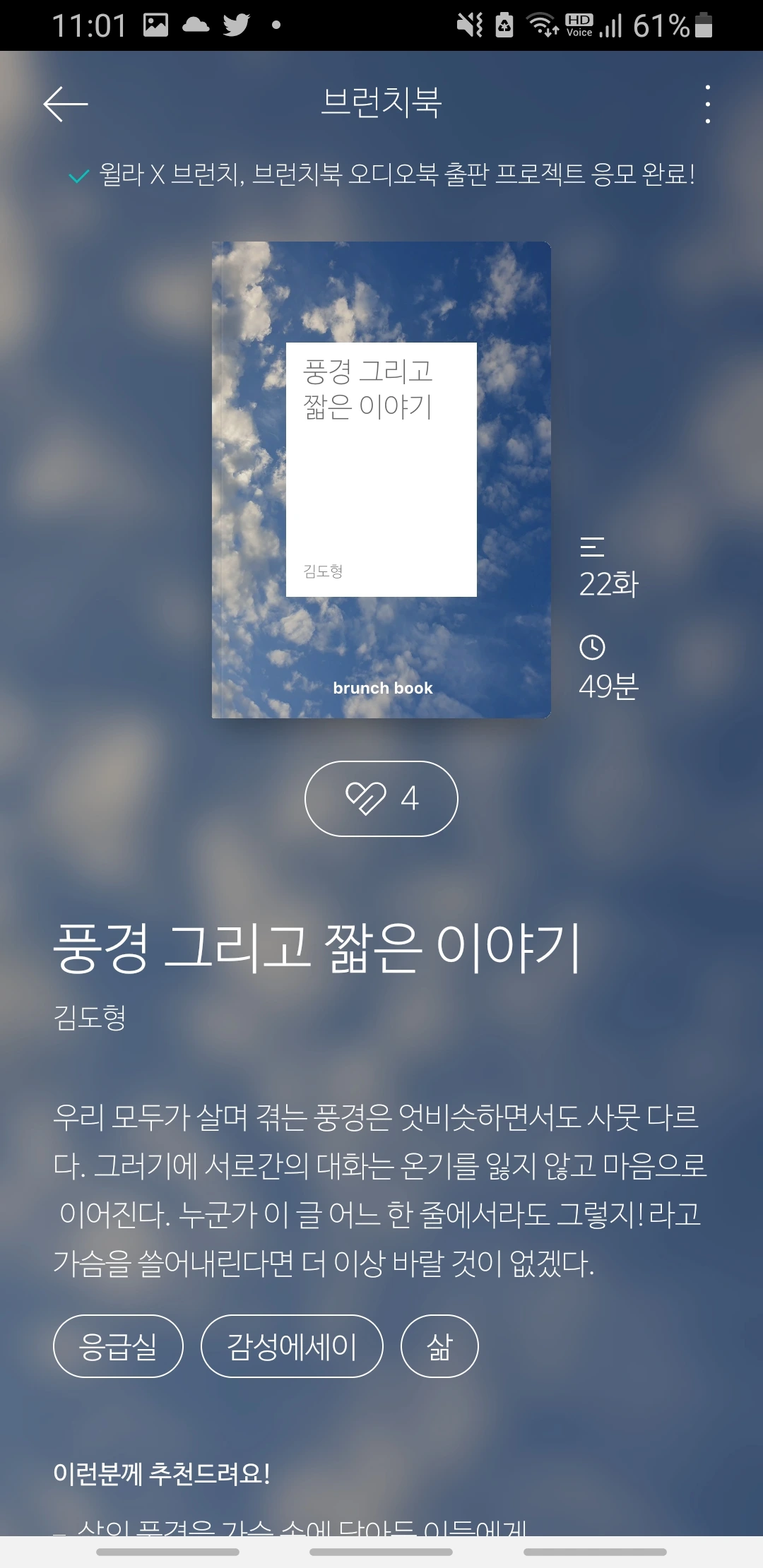 - 브런치에서 오디오북 응모 건이 있어서.