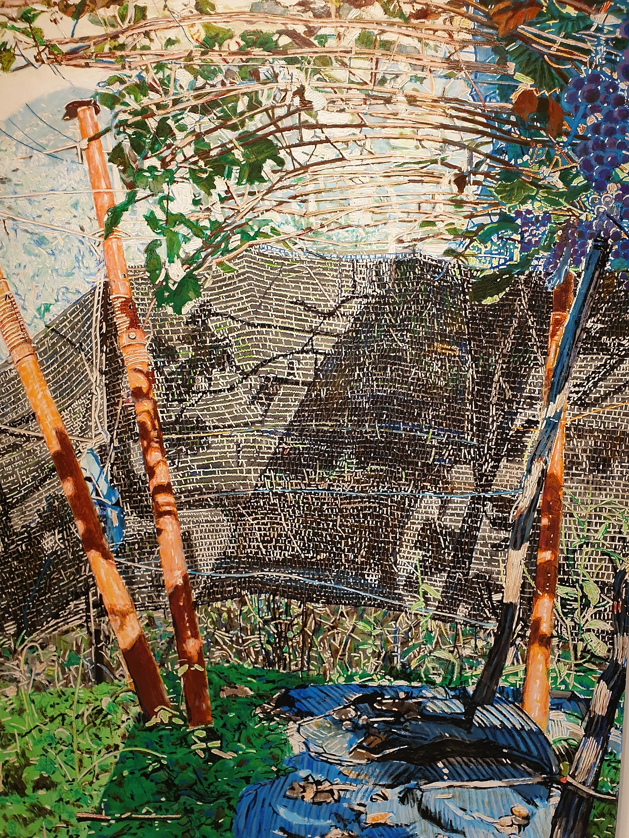 ㅡ 저기 <한낮의 포도밭>이 눈에 들어오네요. 검은 그늘망과 대나무 위의 그림자, 그리고 바닥의 비닐 깔개와 잡초들. 포도밭에 부는 한낮의 더운 바람도 느껴지네요.