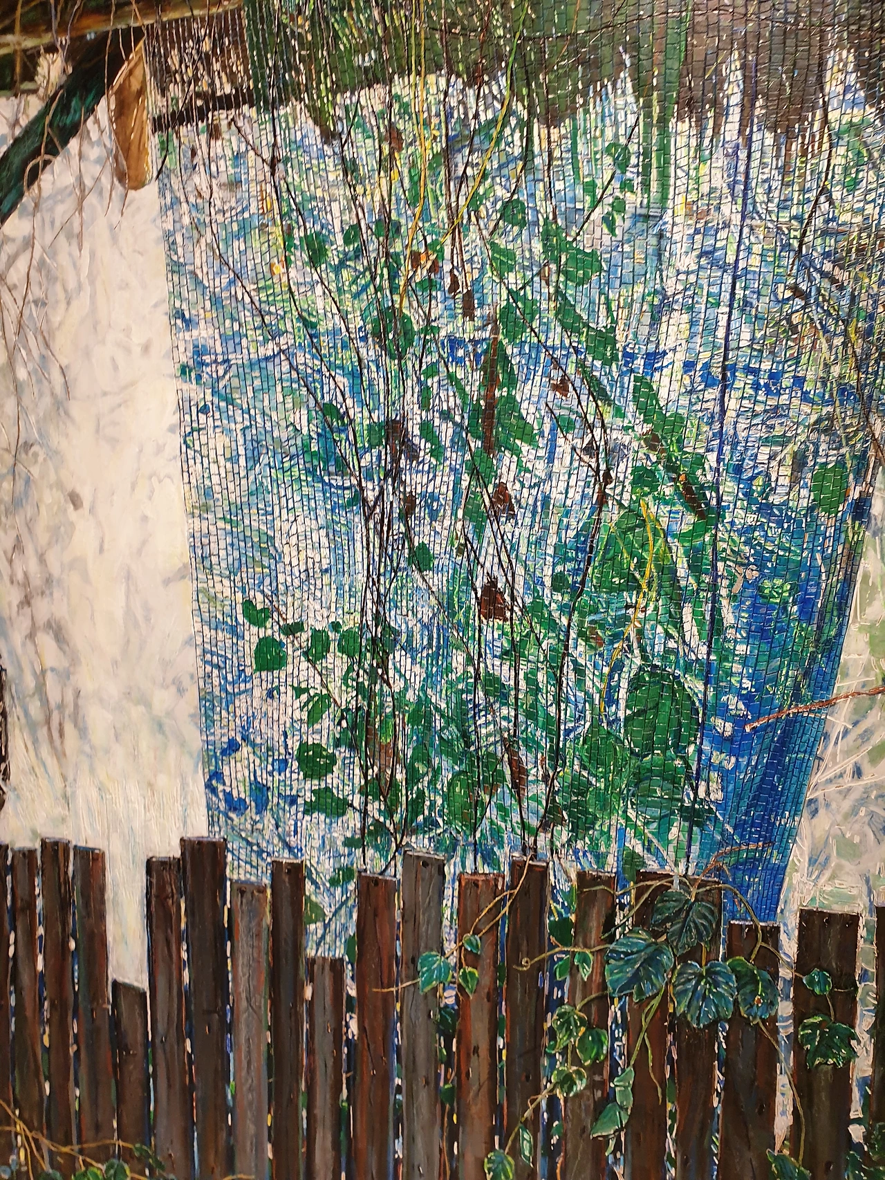 <초록넝쿨과 파란 그늘망> mixed media 2021