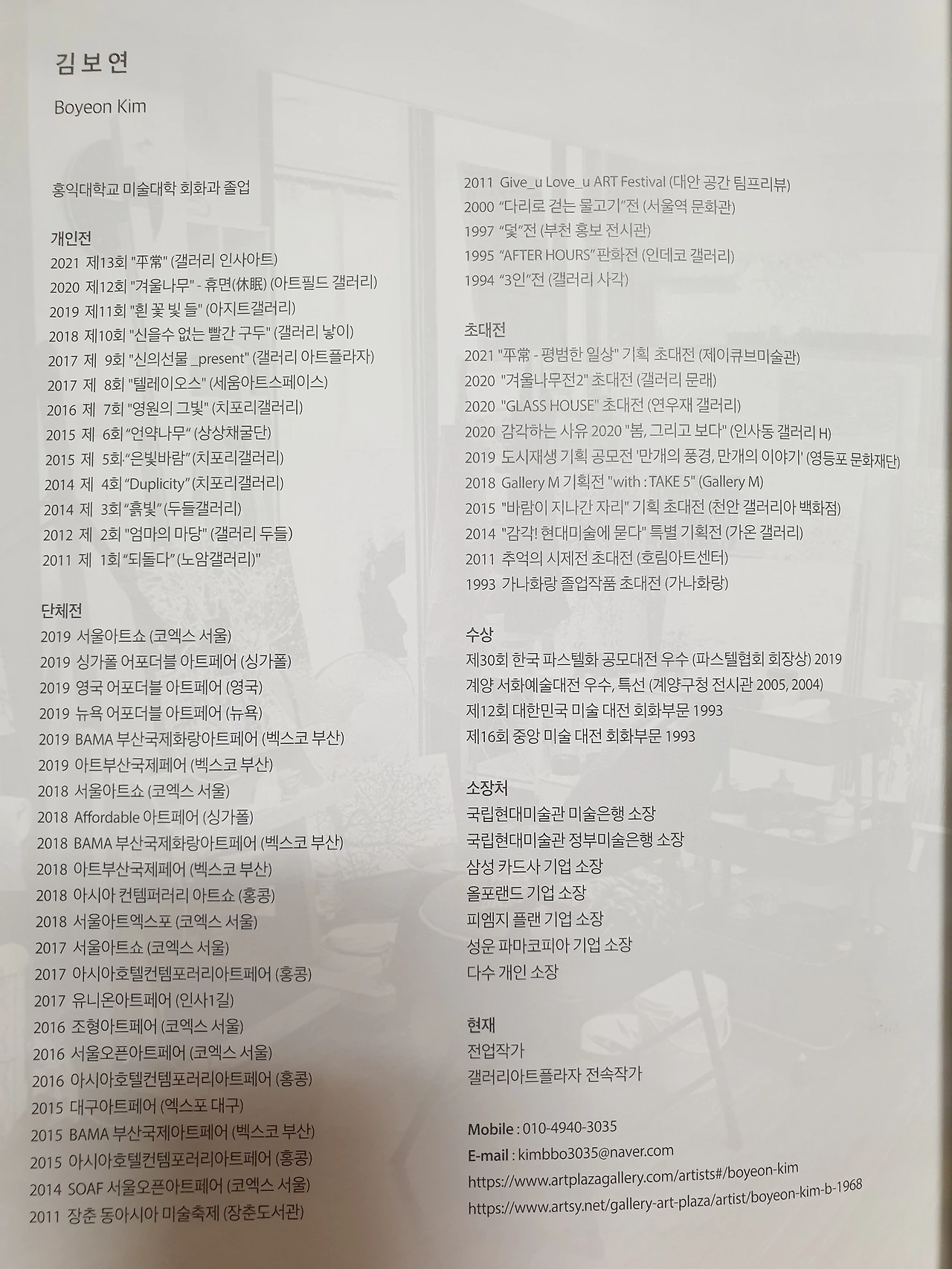 아, 데스크 위의 한 장씩 인쇄된 작품 엽서는 무료이고 얇은 작품 팸플릿은 칼라 화보인데도 대략 3천 원 정도이다. 그것도 대화가 좀 통한다 치면 거저 주는 경우도 있다. 무심코 받아온 작품집이 책상 위에서 잠자다 어느 날 문득 새로운 모습으로 다가온다. 그렇게 관계가 형성되고 작품에 대한 안목이 생겨난다.