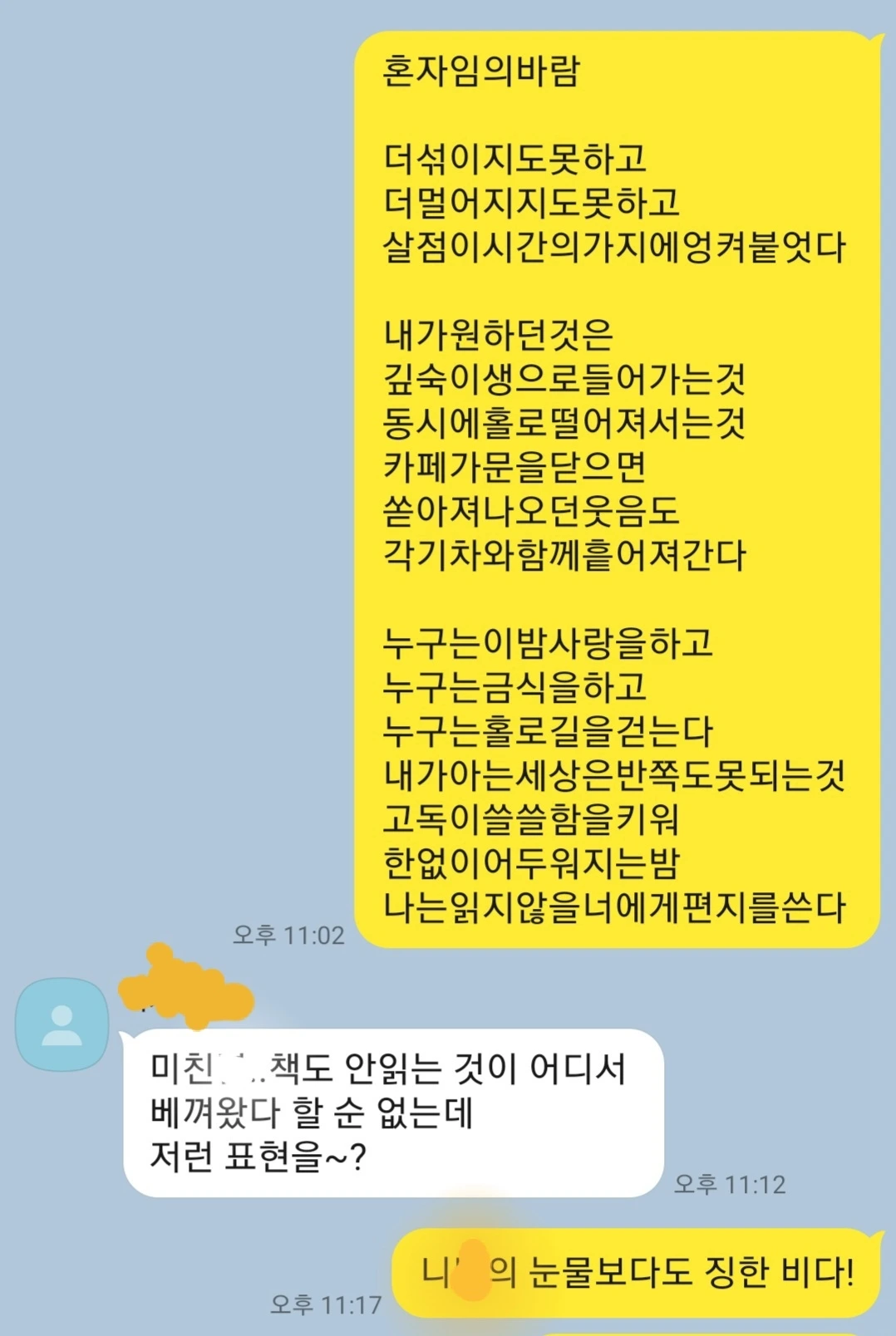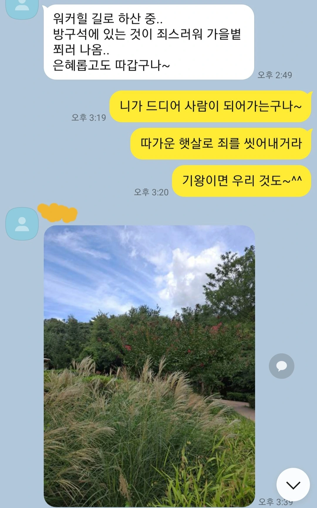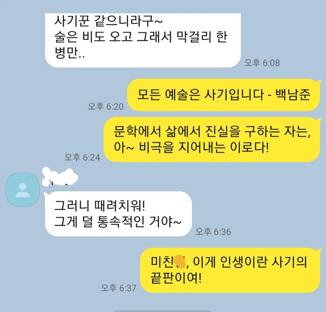 J가 톡을 보내왔다.