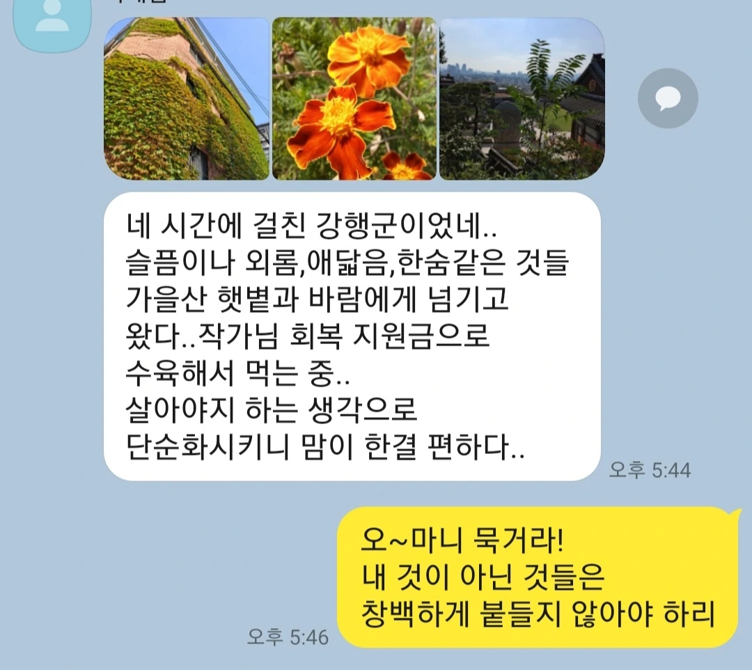 낯선 동네의 골목길을 걸으며 톡을 보냈다.