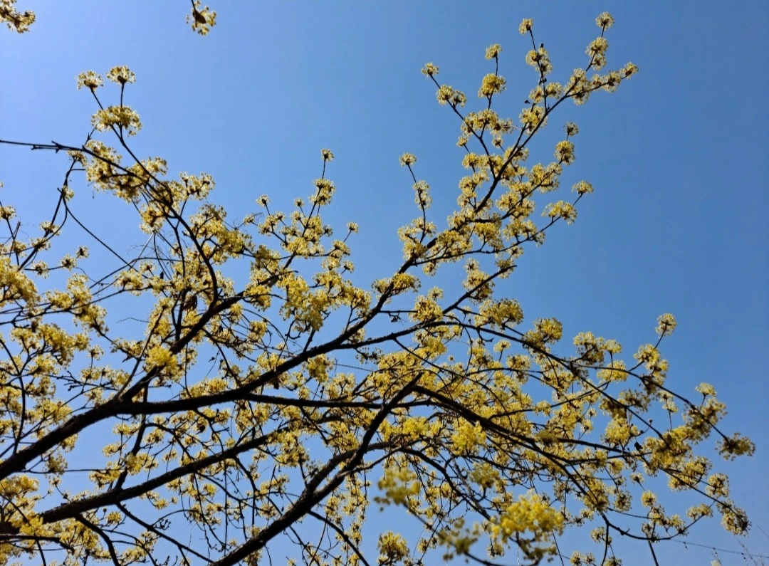 작은 꽃에 꿀을 쟁겨놓고 벌을 부르는 산수유가,