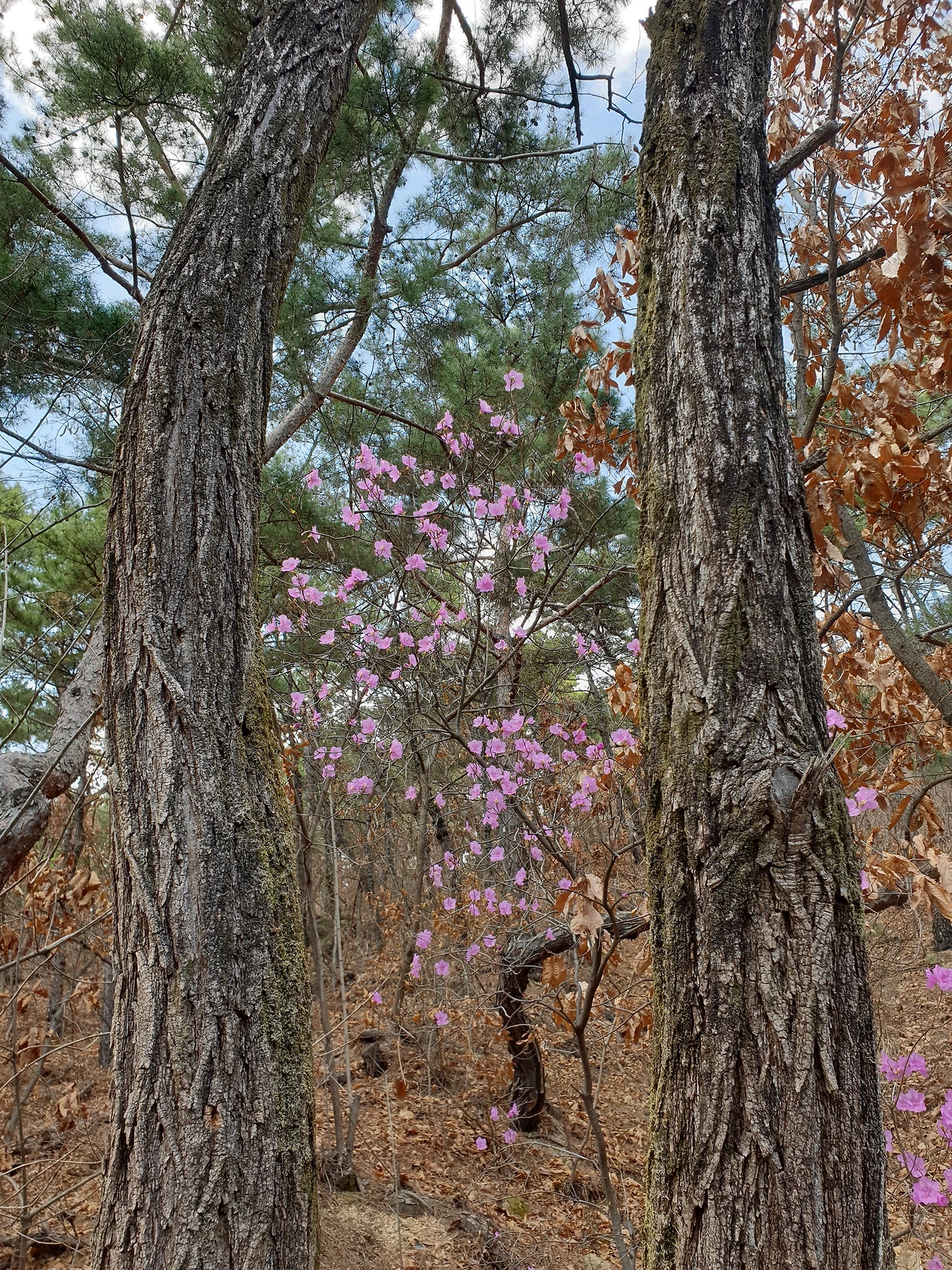 소나무 숲 속에 부끄러이 피어난 진달래가,
