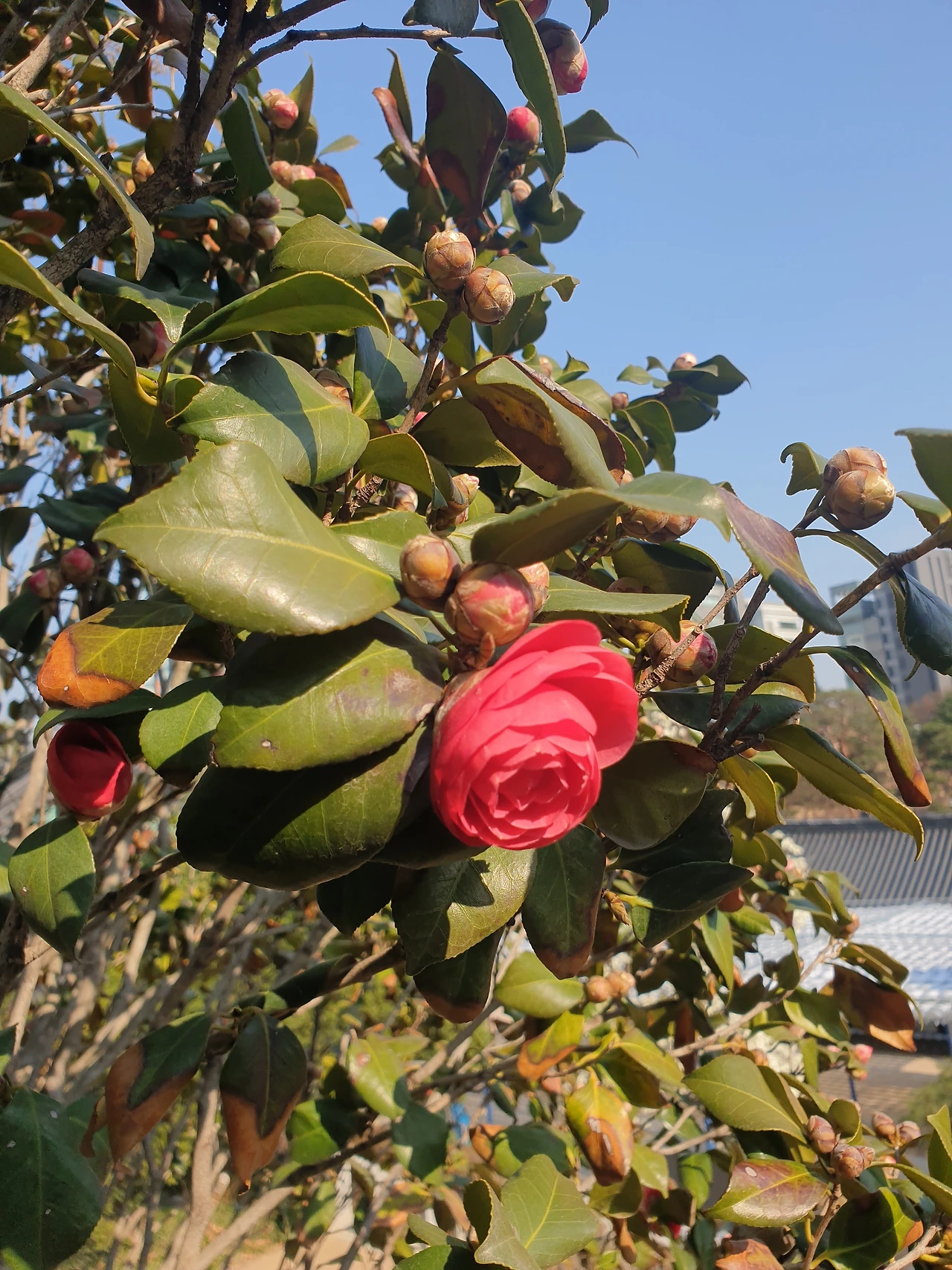 힘든 서울살이 끝에 빨간 볼 내민 동백꽃이,