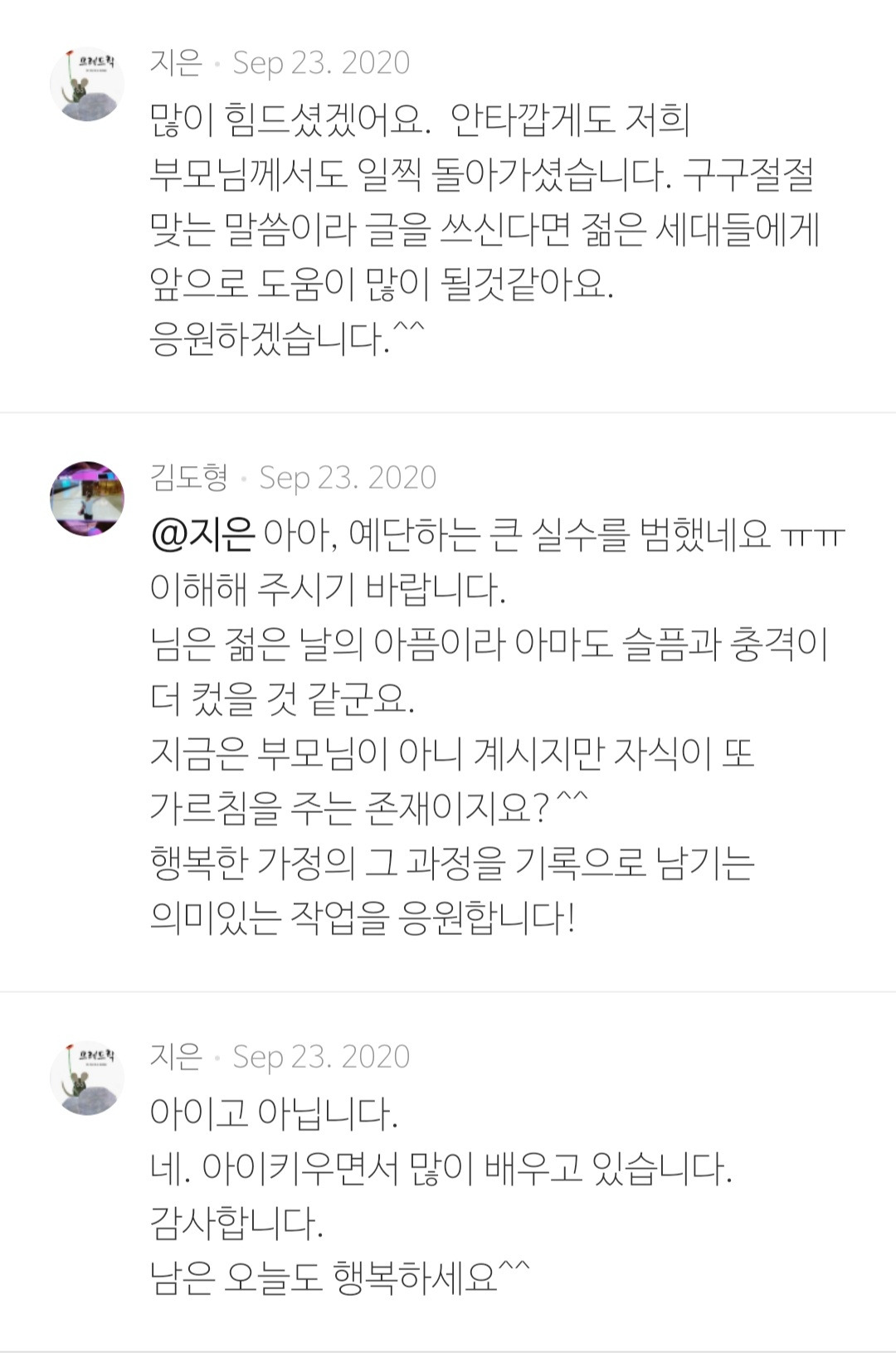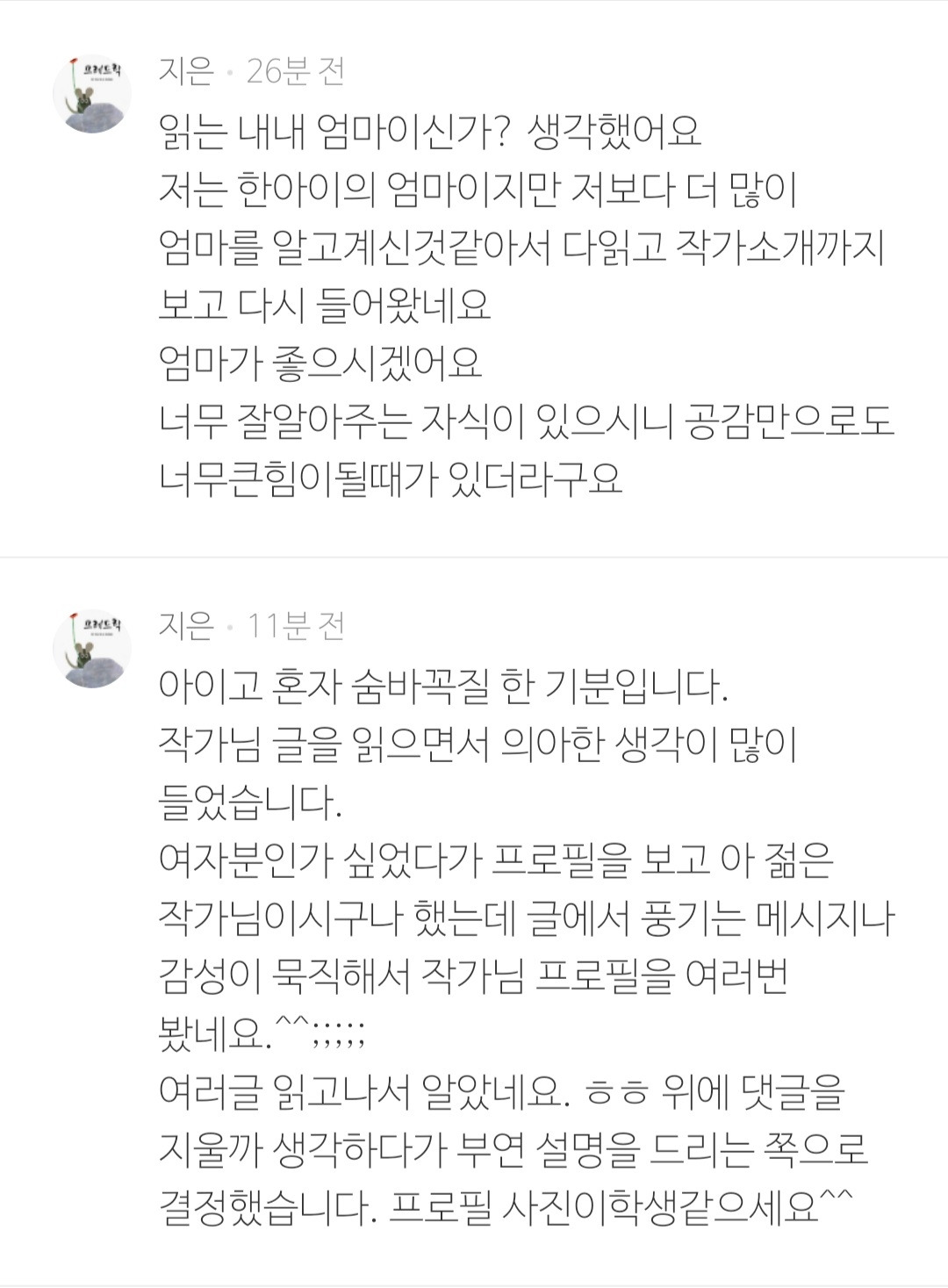 지은님이 <엄마의 자리> 글에 댓글을 남겼다.