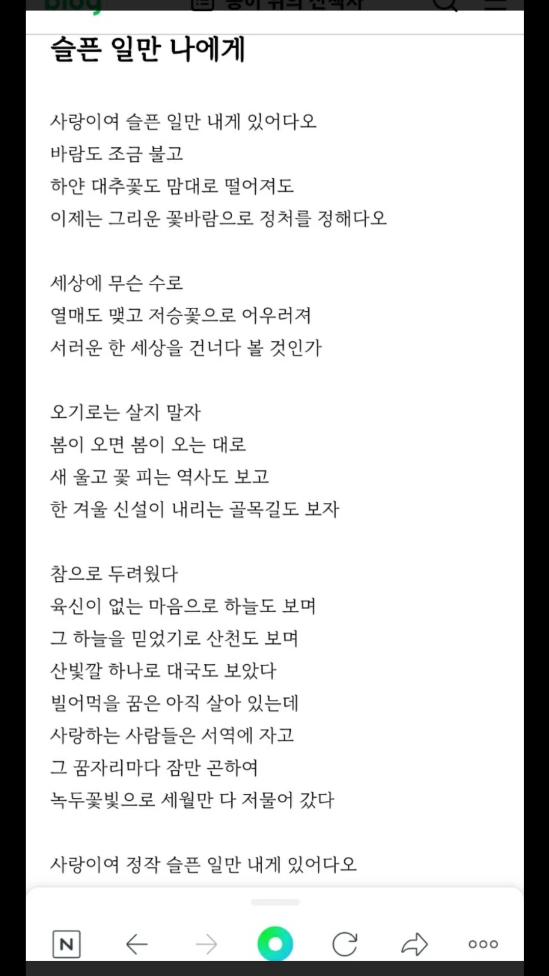 * 지난밤, 박정만 시인의 <슬픈 일만 나에게>가 조용히 카톡방으로 찾아왔다.