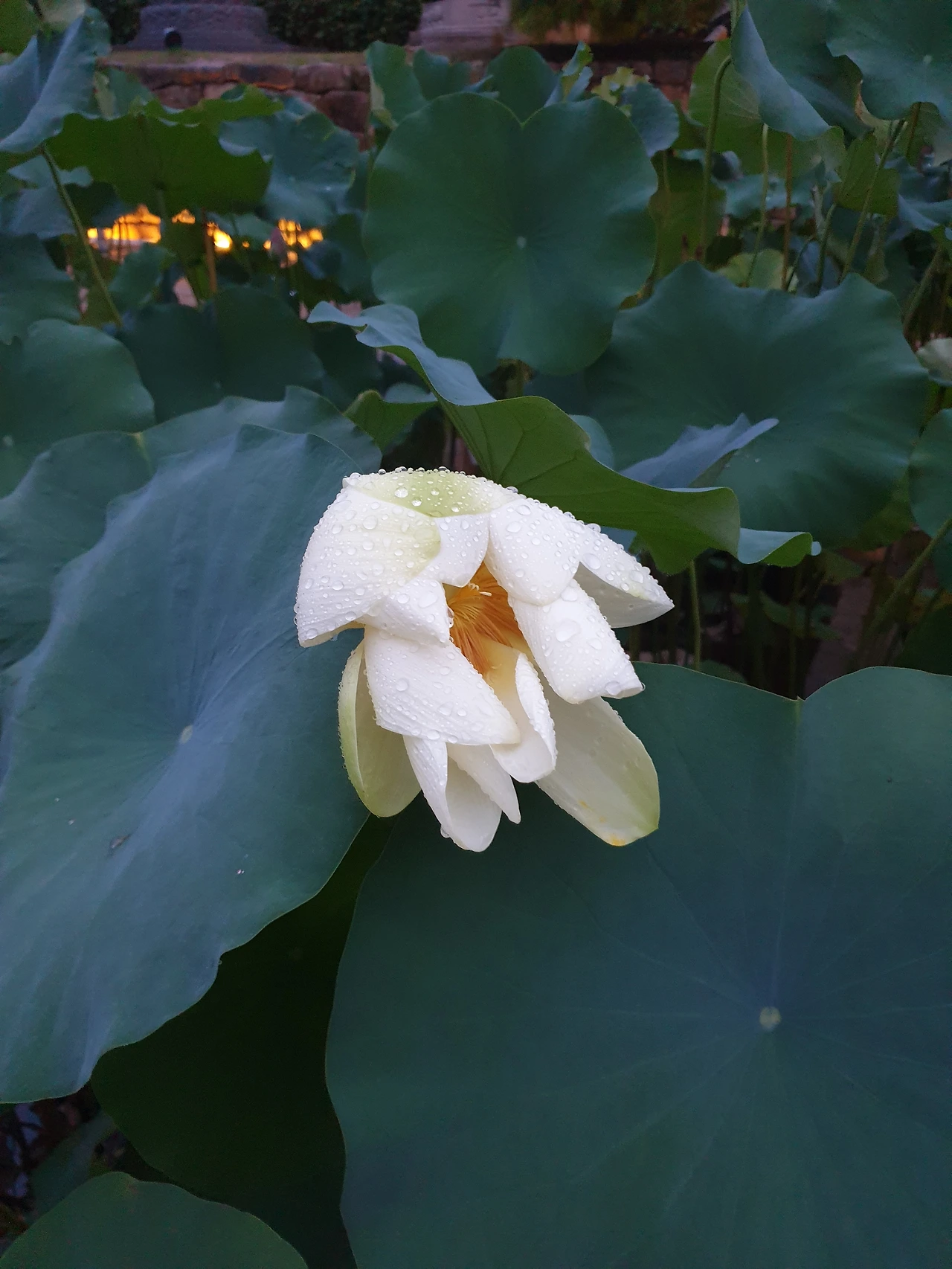 계절의 문을 여닫는 비에 연꽃도 고개를 숙였다