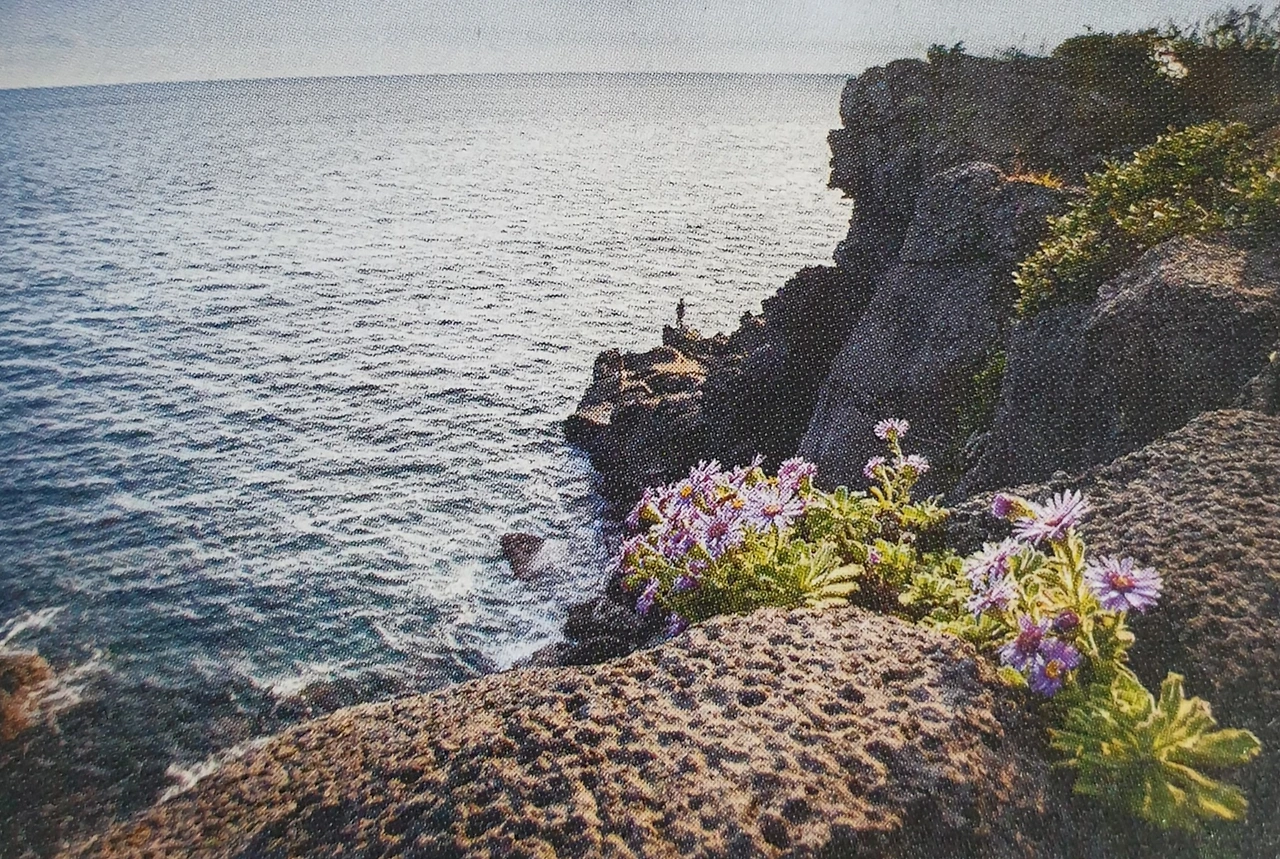 바위 위에서 끈질기게 자라나 오늘 빛 세례를 받는다.