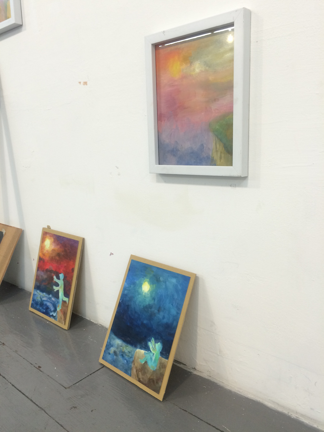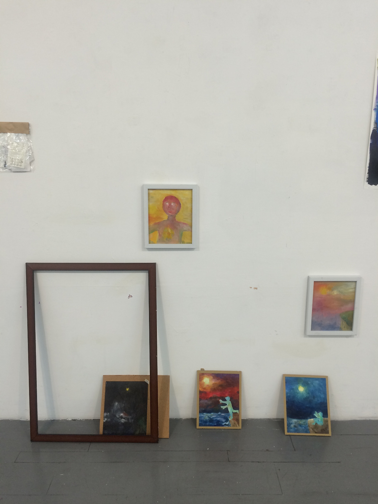 낯설었던 공간은 어느새 내 방처럼 나만의 색깔이 덧입혀졌다. (그 과정이 겁나 신기했다) 그리고 그림을 벽에 걸었을 때의 그 쾌감이란! 이렇게 저렇게 설치해보고 직접 조명도 맞춰봤다. 내가 소화할 수 있는 수준에서, 머릿속에 그린대로 전시를 할 수 있을지 내심 걱정을 많이 했었다. 작품이 많지 않고 캐주얼한 점들이 과연 관객들과의 소통이 될런지, 그림에서 어떤 분위기가 뿜어 나올지 예상이 되질 않았기에 이런저런 염려가 있었고 결국 눈다래끼로 표출되었다.
