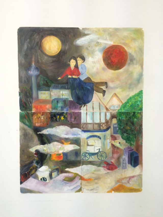 밤 하늘의 달과 그 아래 남산 자락의 삶, 낮의 브레멘(독일)의 일상들. 독일로 유학간 남자친구와의 대화를 통해 서로의 일상을 공유하지만, 그것은 각자의 해석대로 그려진다. 서로가 대화나 영상통화를 통해 경험을 공유하지만 직접 만날 수 있는 방법은 꿈속 뿐이다.