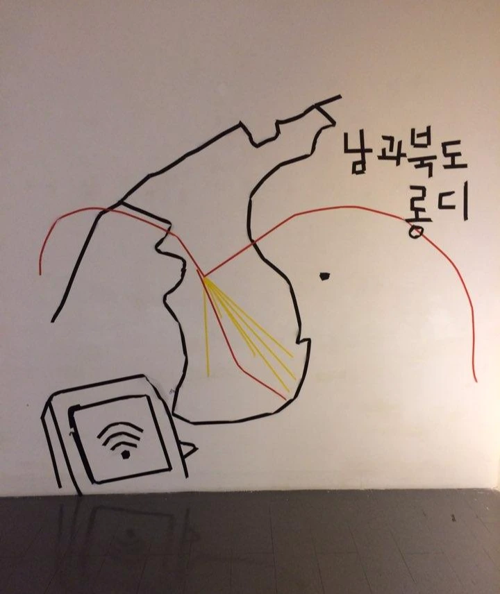 9) 남과 북의 롱디, 200 X 200 cm, 종이 테이프, 2016