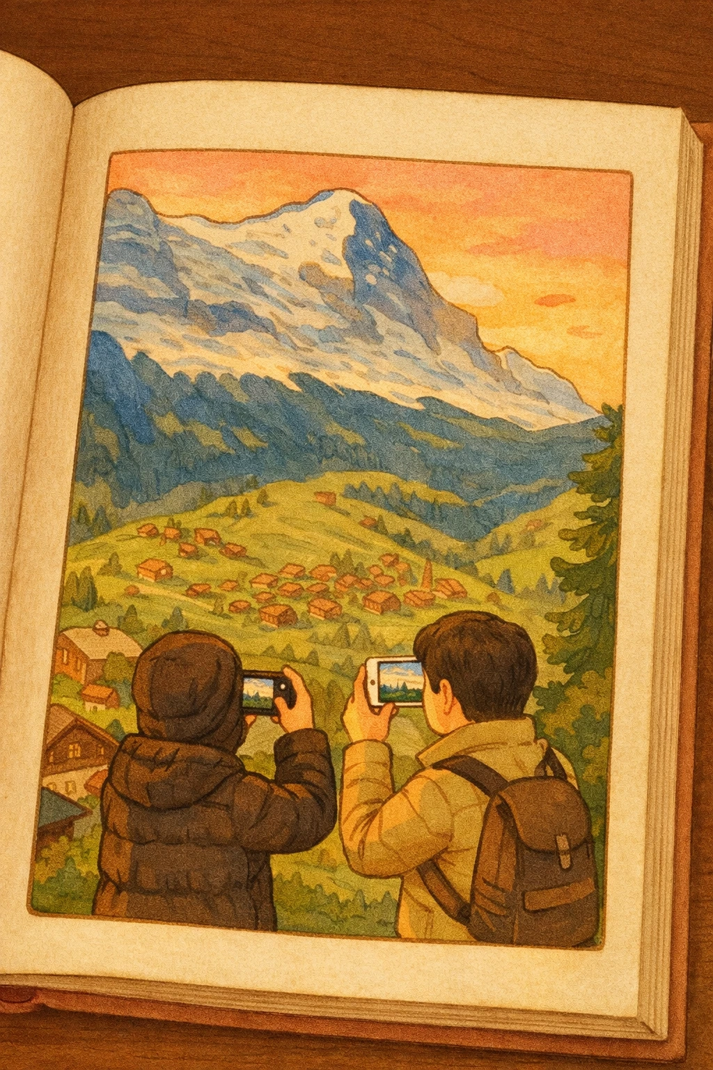 이제 잠시 설명을 멈추고, 다시 알프스 산맥을 감상할 시간을 주겠다.