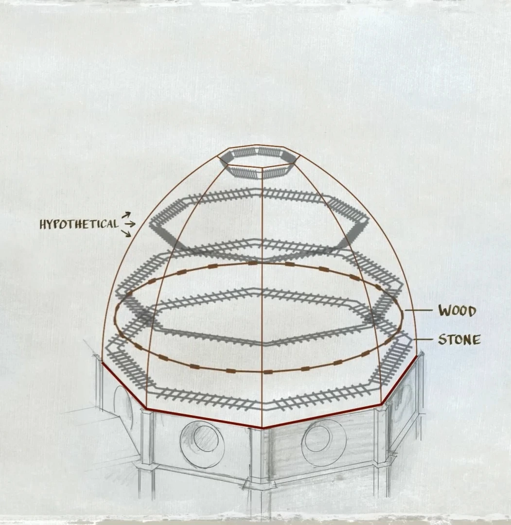 돔 건축에 활용할 석재를 성당 위로 옮기는 것부터 어려운 일이었고,