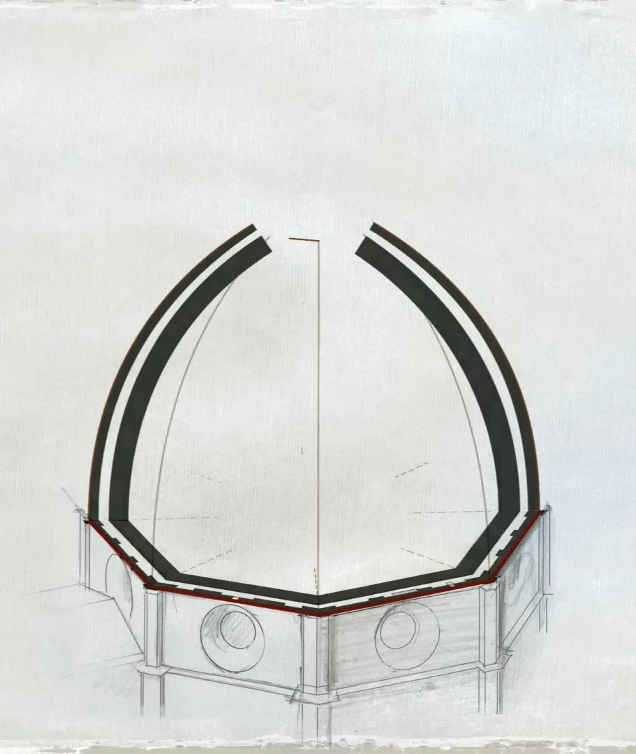 돔을 얹는 것이 큰 난제였다.