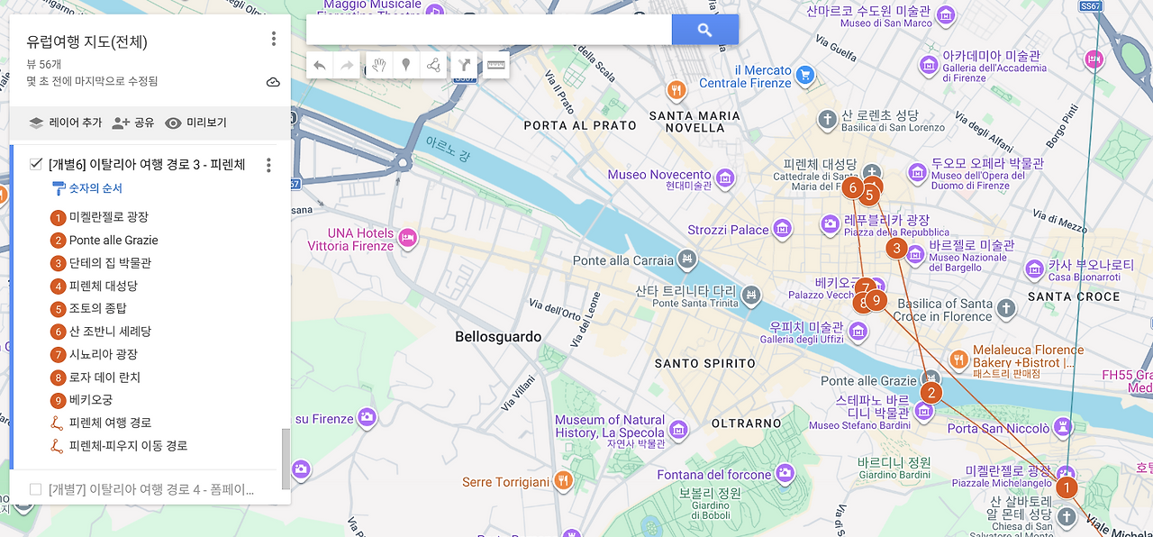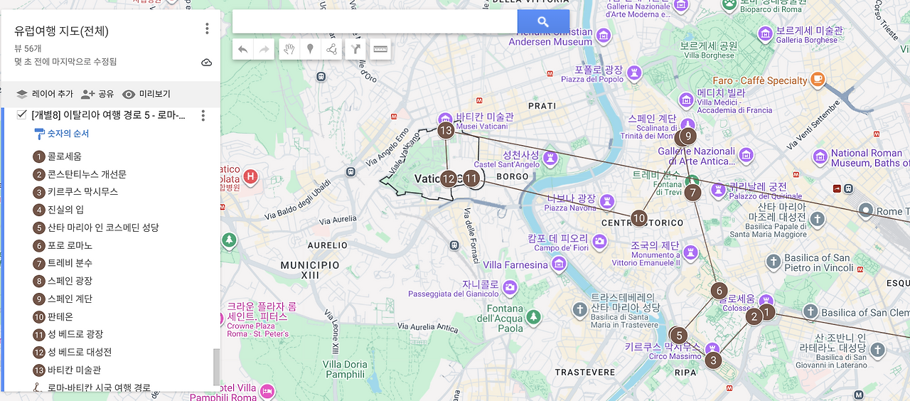 이에 구글 지도를 통해 여행 장소들을 기준점으로 두고,