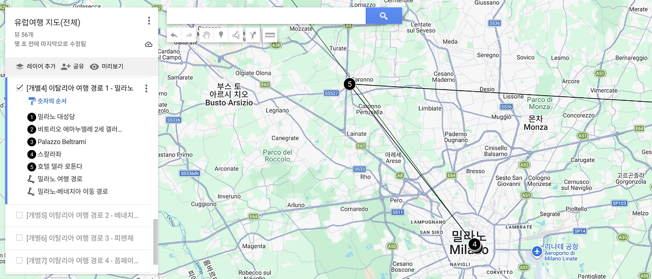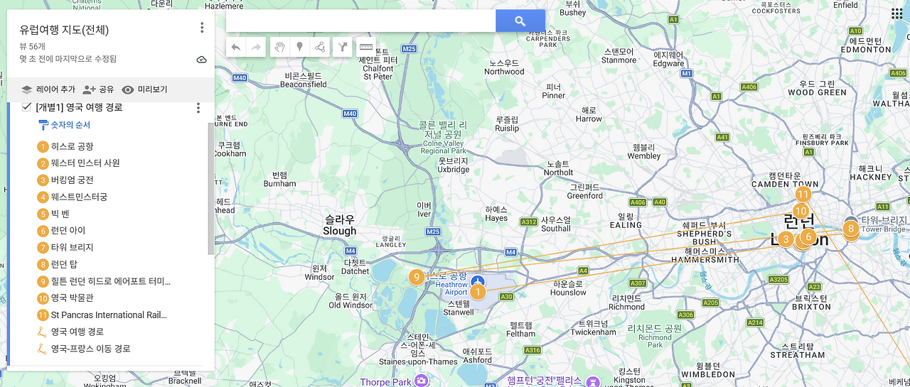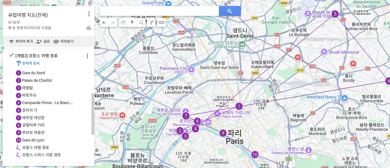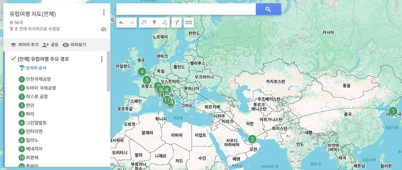 아래 공유한 링크에는 유럽 여행의 주요 경로와