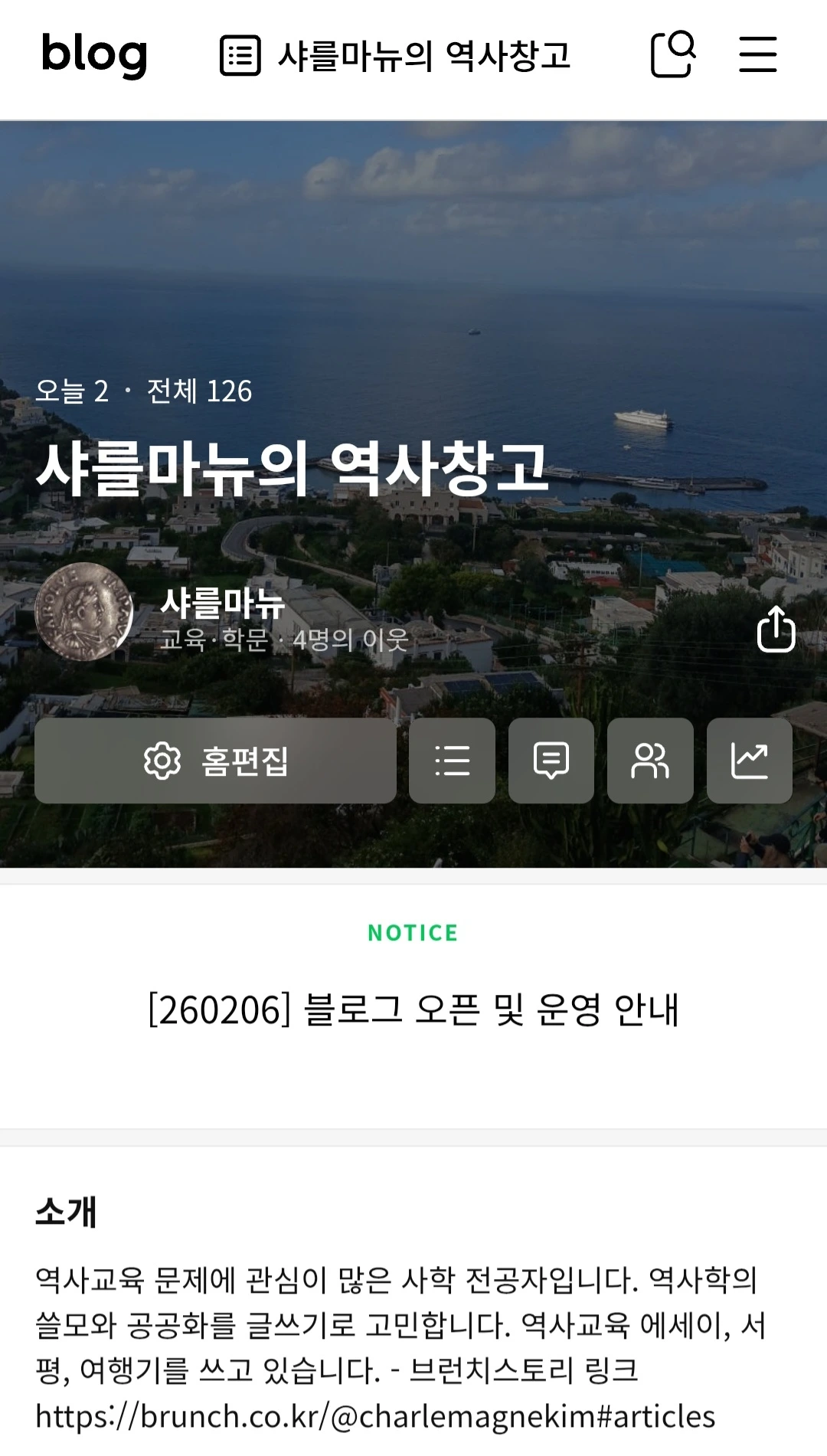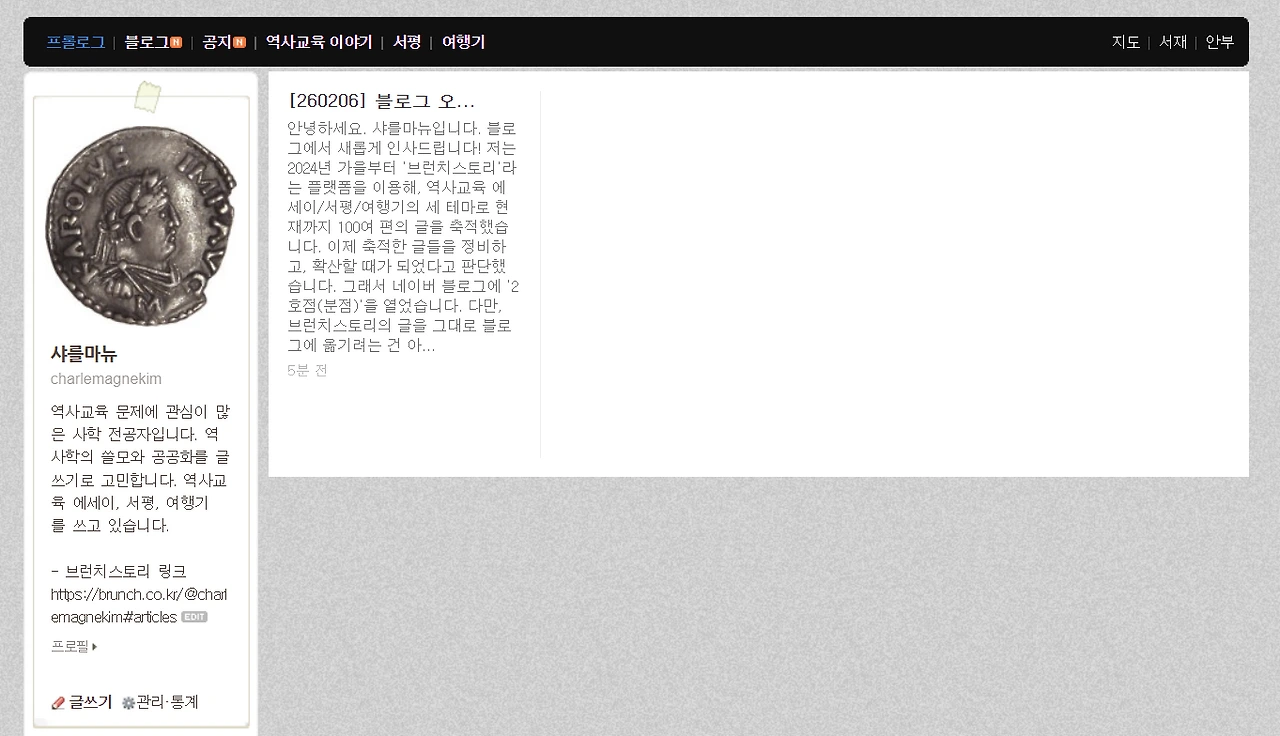 네이버 블로그 '샤를마뉴의 역사창고' 오픈 안내