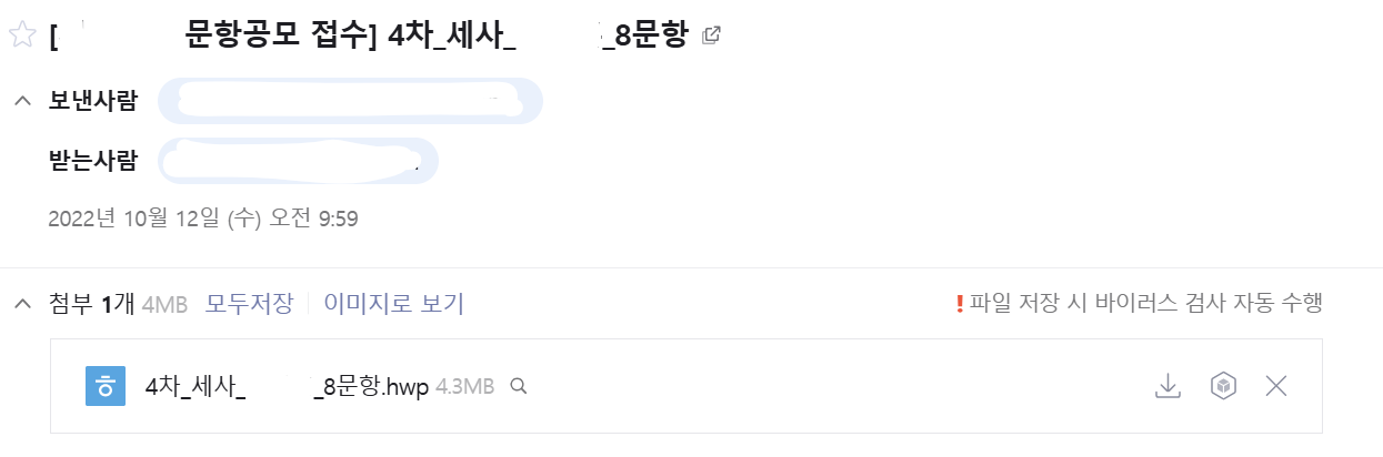 학원 문항공모 접수 메일, 제출일로 보아 9월 내내 문항 제작에 심혈을 기울였던 모양이다.