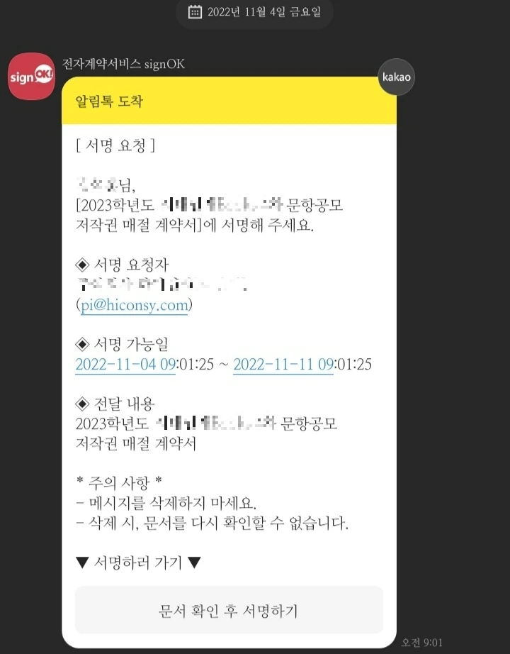 문항공모 건과 관련한 전자 계약서이다. 전자 계약서라는 게 있는 걸 처음 알았다. 학원이 개인의 문항을 사며 금액을 받는 대신 저작권 행사는 불가해진다. 그래서 '매절'이다.