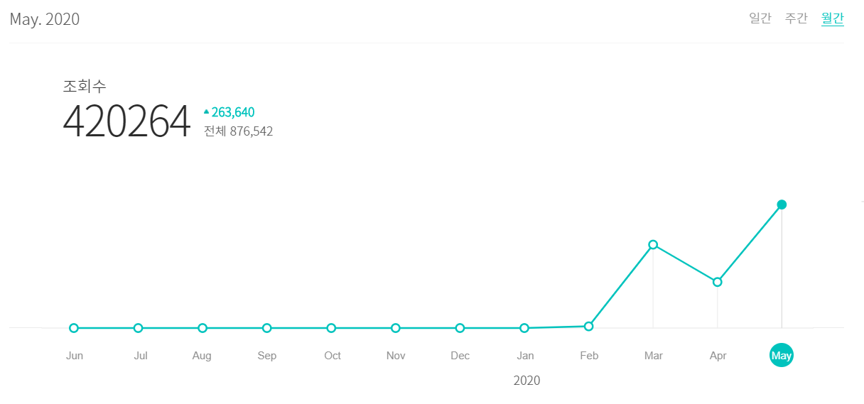 2년의 시간을 넘어 커뮤니티 멤버들의 조언 덕분에 1주일 만에 내가 원하는 브런치 작가가 되었다. 그것으로 끝이 아니다. 브런치에 글을 매일 적다 보니 10만 조회 수가 넘는 글들이 생겼고, 구독자가 5백 명 이상 늘어났으며 현재 누적 조회수가 87만 명을 넘었다. 그리고 고무적인 것은 매달 조회 수가 늘어나는 것이다.