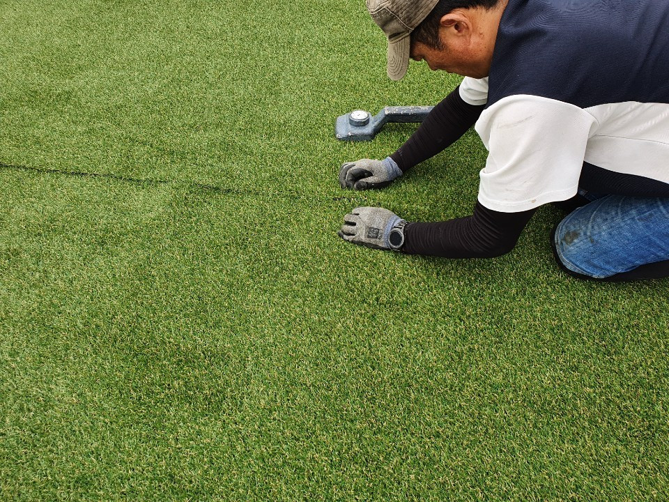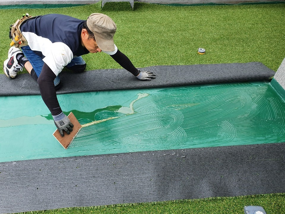 바닥과 인조잔디가 분리되지 않고 잘 붙어있도록 본드 처리를 해야 한다. 그렇지 않으면 사람들이 움직일 때나 강풍이 불면 인조잔디가 움직여서 보기에 좋지 않을 수 있다.