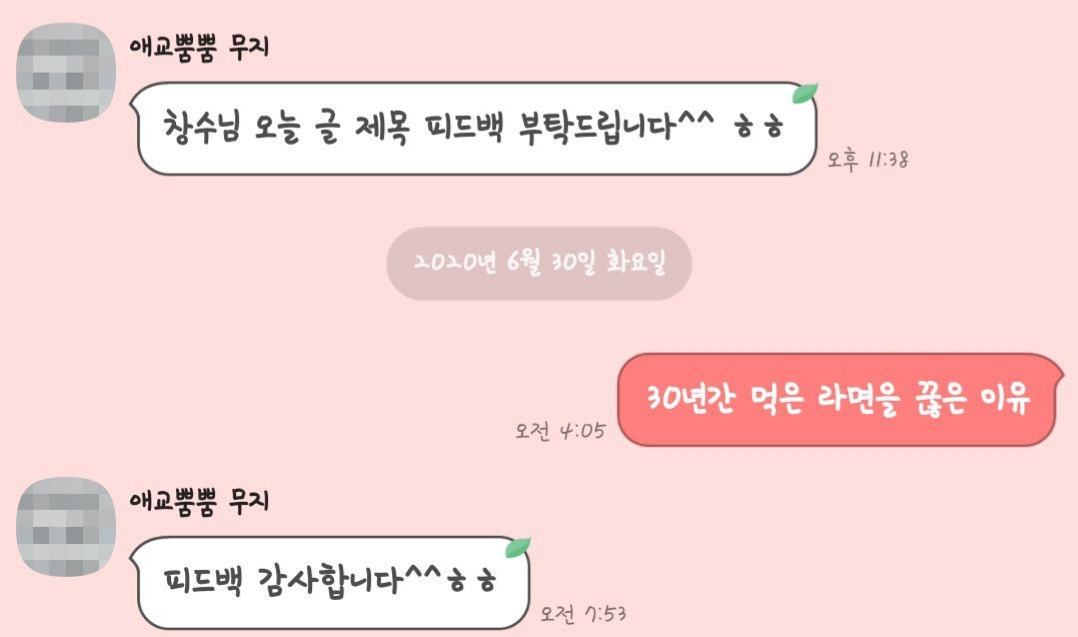 그렇게 한달 7기에는 팀원들의 동의를 얻어 약간의 팁과 제목에 대한 피드백을 줬다.