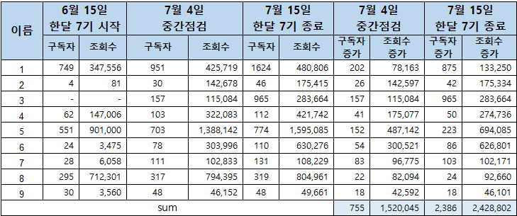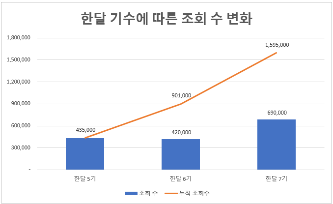 리더로서 팀원들에게 동기부여를 하고 제목 피드백을 주며 조회수 상승을 일으켰지만 나의 성과도 적지 않다. 한 달 동안 내 글은 총 69만 조회를 달성했고 누적 조회수는 150만이 넘은 상황이다. 무엇보다 팀원들과 소통하고 그들에게 피드백 주면서도 개인적인 성취를 놓치지 않았다는 것이 만족스럽다.