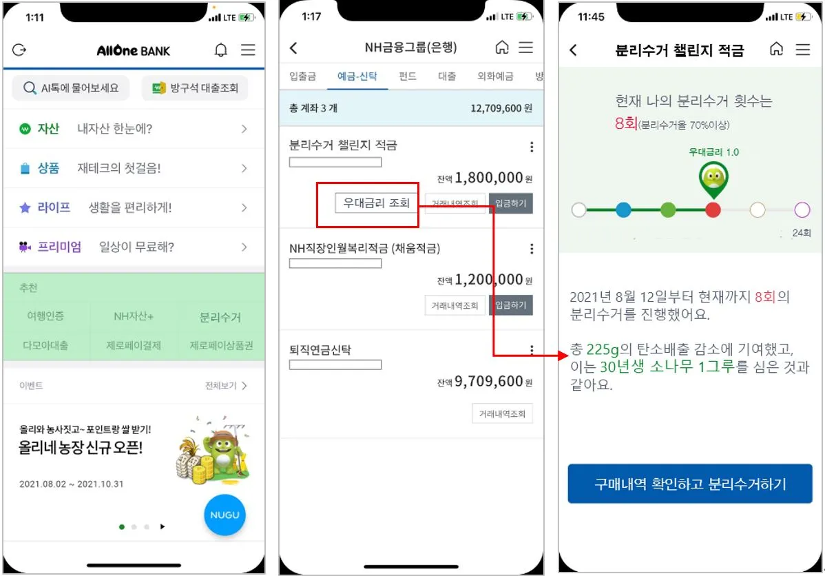 다. 상품 상세페이지(적금 가입 후) – 분리수거 및 우대금리 현황