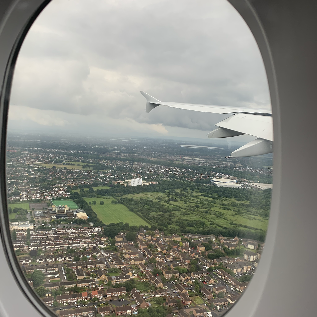 비행기의 창문을 통해 처음으로 마주한 런던은 구획에 맞춰 지어진 비슷비슷한 외양의 낮은 갈색 건물들과 초록색으로 뒤덮인 공원 때문인지 왠지 모를 오가닉한 느낌을 주었다. 한적하고 여유로운 분위기가 느껴졌다고 할까. 거기에 더해 또 한 가지 나를 놀라게 한 사실은 위의 사진이 찍힌 시간이 오후 아홉 시를 훨씬 넘겼다는 점인데, 런던의 일몰 시간을 미리 체크하지 못한 나의 이 작은 불찰은 추후에 있을 런던 야경 감상 계획에 큰 지장을 미치고 만다.