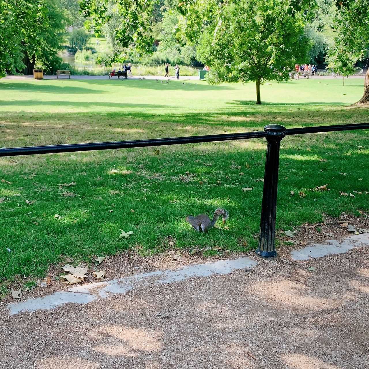 런던의 날씨가 우중충하다는 것은 단지 편견에 불과했던 것인지 이 날은 이른 아침 부터 화창한 하늘위에 눈부신 햇살이 반짝였다. 그래일까, 푸릇푸릇하게 자라난 잔디와 나무를 구경하며 걷는 길은 전혀 지루하지 않았다. 중간에 우리를 마중 나온 귀여운 청설모 친구와도 마주쳤고 말이다. 어디로 보나 모든 면에서 완벽한 산책 시간이었지만 한 가지 아쉬운 점이 있다면 다음 날 트라팔가 광장에서 WEST END LIVE 2019 행사가 있는 덕분에 펜스가 설치되어서 트라팔가 광장의 상징인 사자 상에 가까이 다가갈 수 없었다는 것이다. 그래도 넬슨 제독 기념비는 제대로 보였으니 불행 중 다행이 아닐 수 없다.