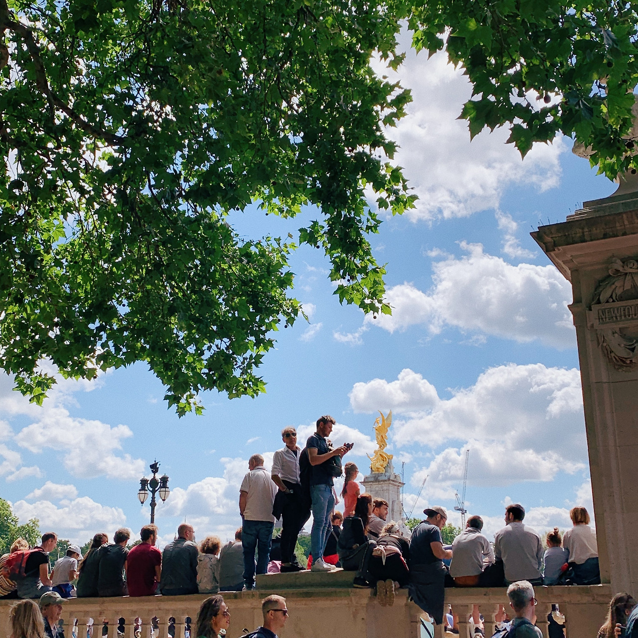 그렇게 따뜻하고 화창한 날씨 덕분에 즐거운 마음으로 들떠서 버킹엄에 도착했건만 상황이 그리 좋지 않았다. 좋은 자리는 이미 먼저 도착한 수 많은 관광객들로 가득 차 있던 것. 그나마 한 시간 반이라도 일찍 도착한 덕분에 상대적으로 고지대인 빅토리아 메모리얼 쪽에 자리를 잡아서 최소한의 시야는 확보되었지만, 조금이라도 늦었으면 다른 사람들의 정수리만 실컷 구경했을지도 모를 일이다. 개인적인 소감으로는 이 날 영국을 찾은 관광객은 여기에 다 모여있다고 생각될 정도로 대단한 인파였다. 관광 도시로서의 런던이 보여주는 진 면목을 확인할 수 있었다고나 할까.