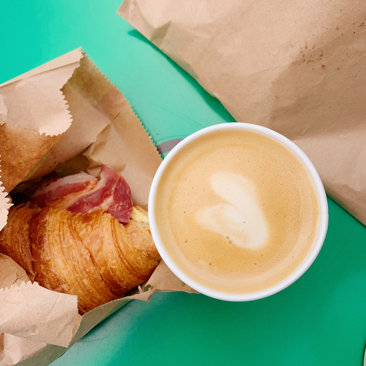 들어가자마자 나의 눈을 사로잡았던 베이컨 에그 크루아상과 따뜻한 플랫화이트를 하나 주문해서 카페 밖에 비치된 초록색 테이블에 앉았다. 바로 코 앞의 거리를 빠르게 지나다니는 출근길의 런던 사람들을 가만히 구경하며 한 모금씩 들이키는 커피는 어쩌면 그렇게 부드럽고 향긋하던지. 서울에서의 나에게는 상상조차 할 수 없는 시간과 여유이기 때문일까. 8시가 채 되지 않은 이른 시간이었지만 피로감은 전혀 느껴지지 않았고 오히려 상쾌한 공기와 느긋하게 흘러가는 시간이 너무나도 아름답고 감사하게 느껴졌다.