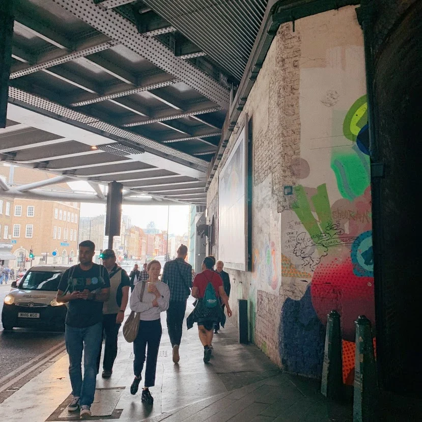 이것 저것 구경하다 보니 어느덧 점심 시간이 훌쩍 지나 버렸다. 그렇지만 새로운 장소에 대한 탐험심은 줄어들지 않았기에 늦은 점심을 먹기 위해 버로우 마켓에 왔다. 스트릿 푸드와 식자재로 유명한 시장이어서 나름의 기대를 했는데 정말 사람이 너무너무 많아서 초입부터 완전히 지쳐 버렸고, 결국엔 시장을 이탈하여 미리 검색해서 알아봐 두었던 타파스 레스토랑으로 바로 직진할 수밖에 없었다. (시장 안에서 인파에 시달리다 멘탈이 붕괴된 탓에 시장 내부의 사진이 없다.)