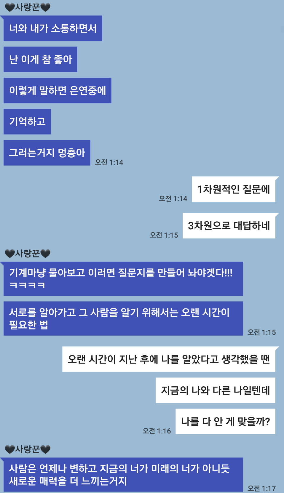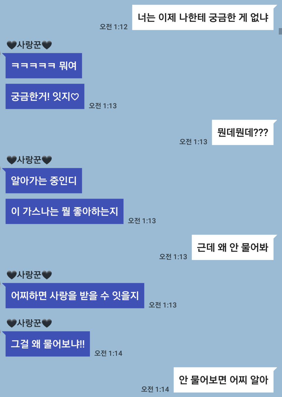 "좋아하면 다 알고 싶잖아. 그러니까 계속 물어봐야지.