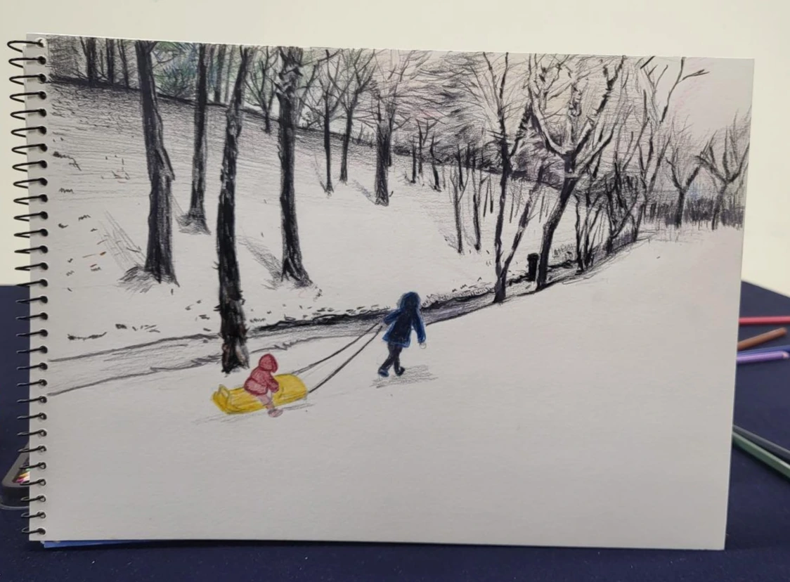 지난겨울 조카들 사진을 보고 색연필로 그렸다.