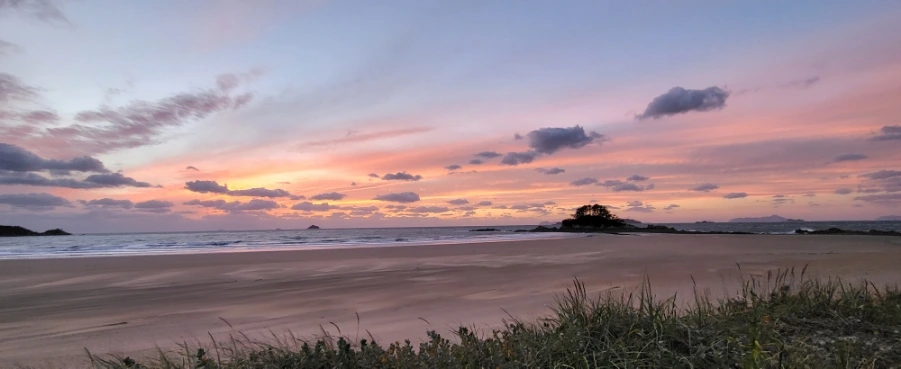 이날 저녁을 먹고 낙조를 보기 위해 캠핑장 앞바다를 구경했는데 아주 고운 모래사장에 붉은 노을이 정말 멋졌다.
