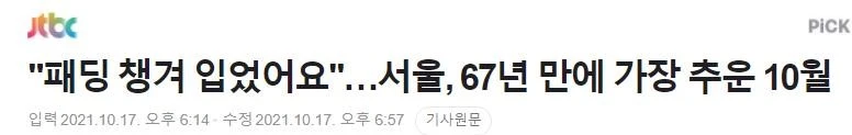 10월 중순에 한파주의보가 뜬 추운 날이었던 것이다.